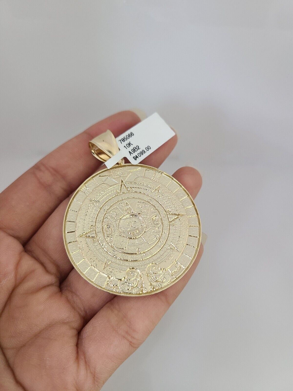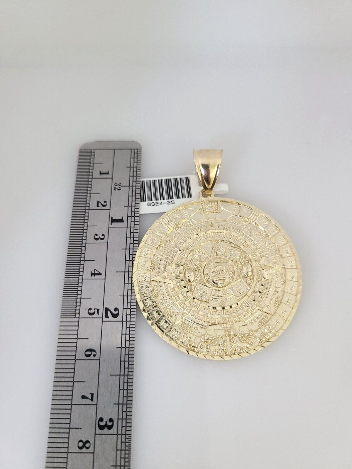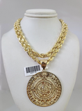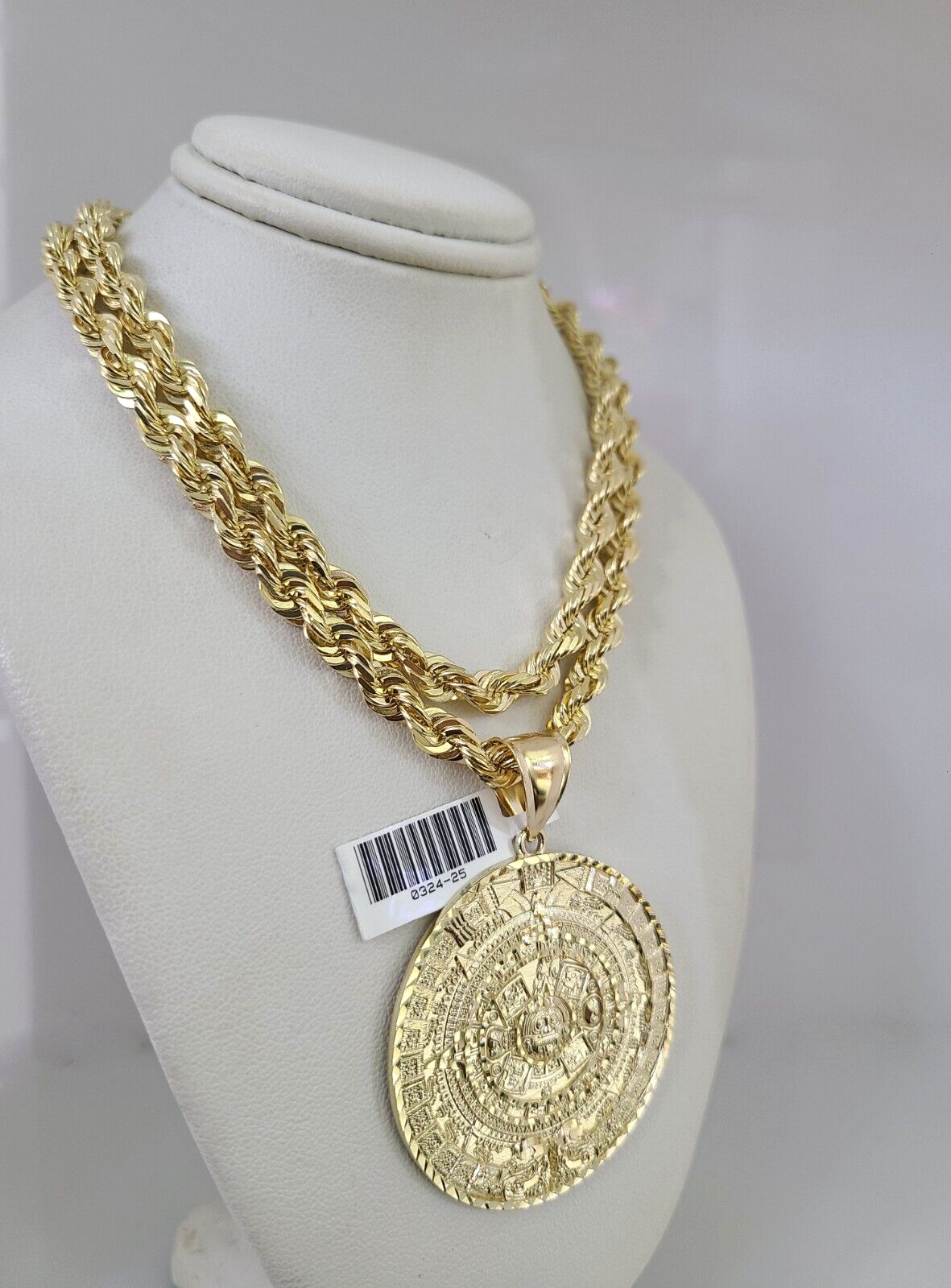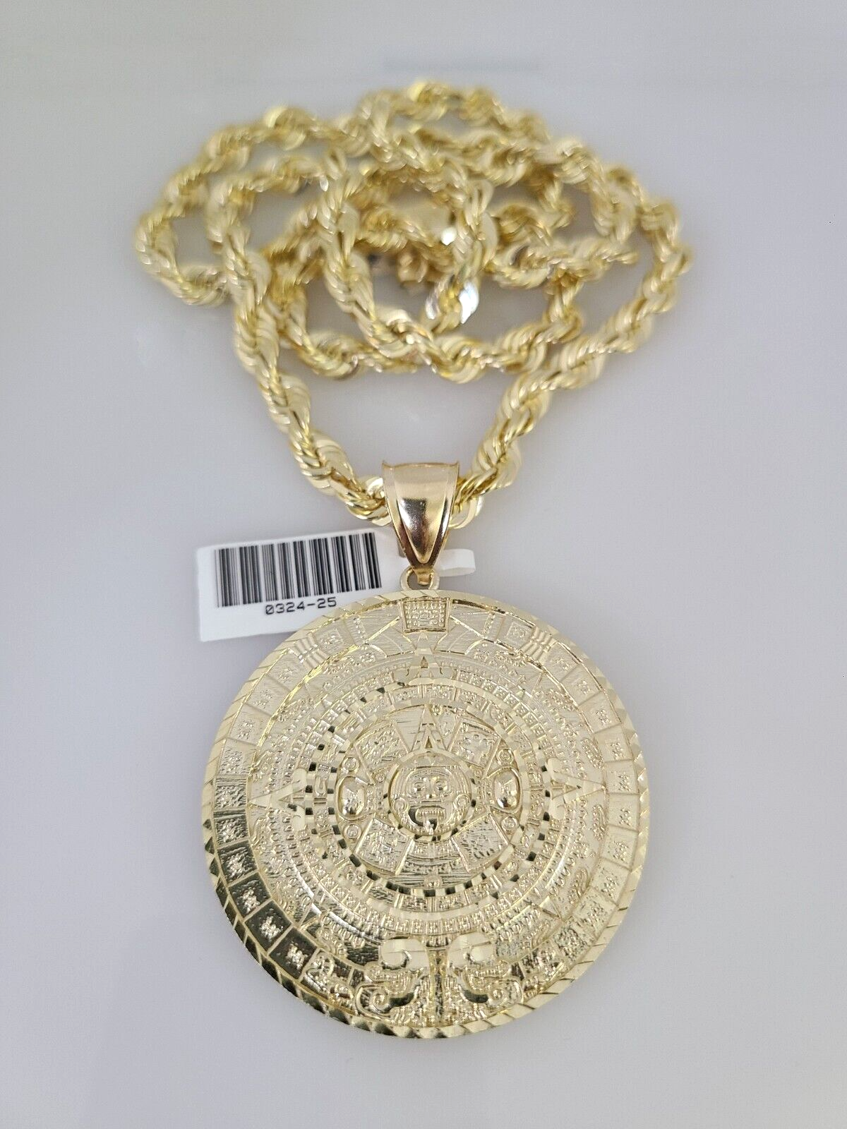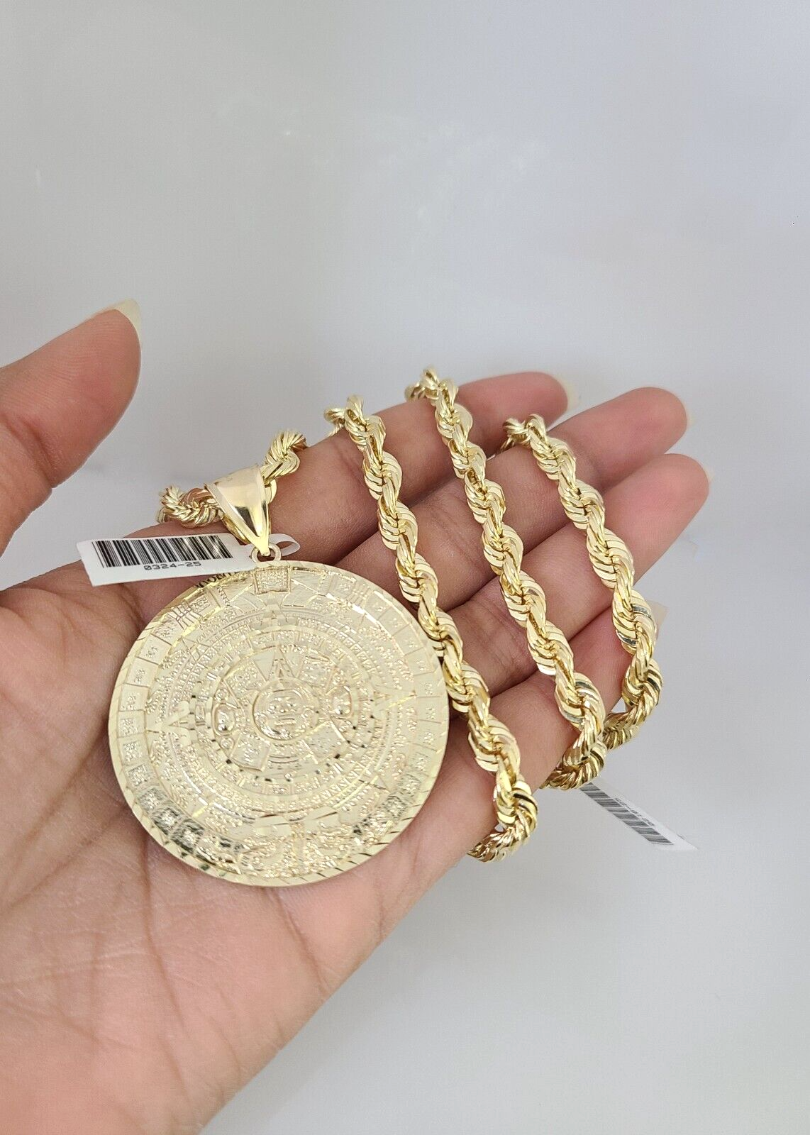 10kt Gold Solid Rope Chain Mayan Calendar Charm Set 18"-30'' Inch 6mm Pendant