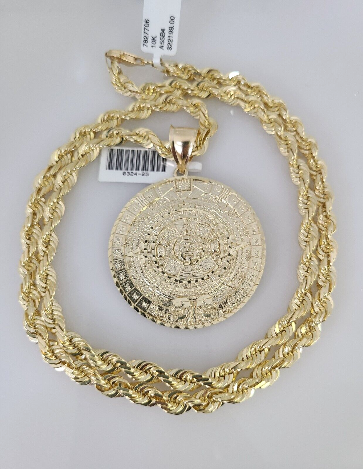 Genuine 10k Yellow Gold Solid Rope Chain 18-30 Inch 6mm Necklace with Mayan Calendar Charm design as a SET. The Various length of the Chain are 18-30 Inches. If you are not happy with the way it looks or feels, we do offer 30 - Days FREE Return shipping. Contact us for more information.