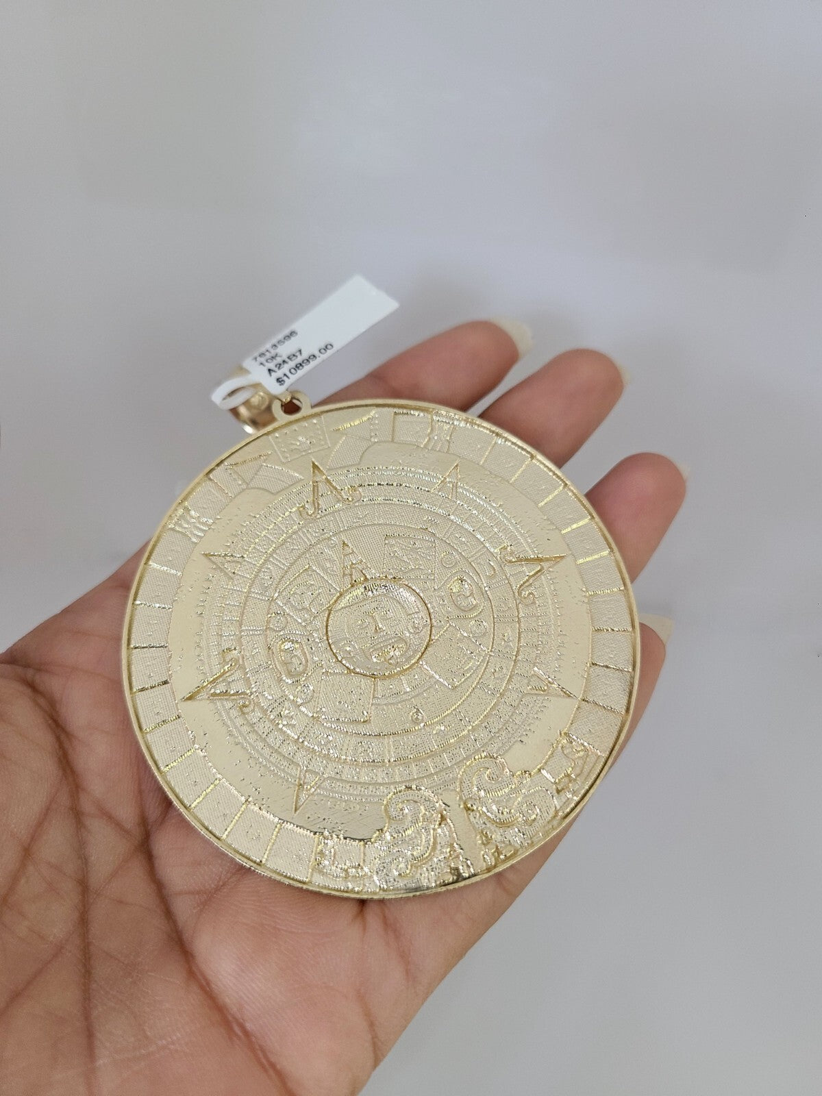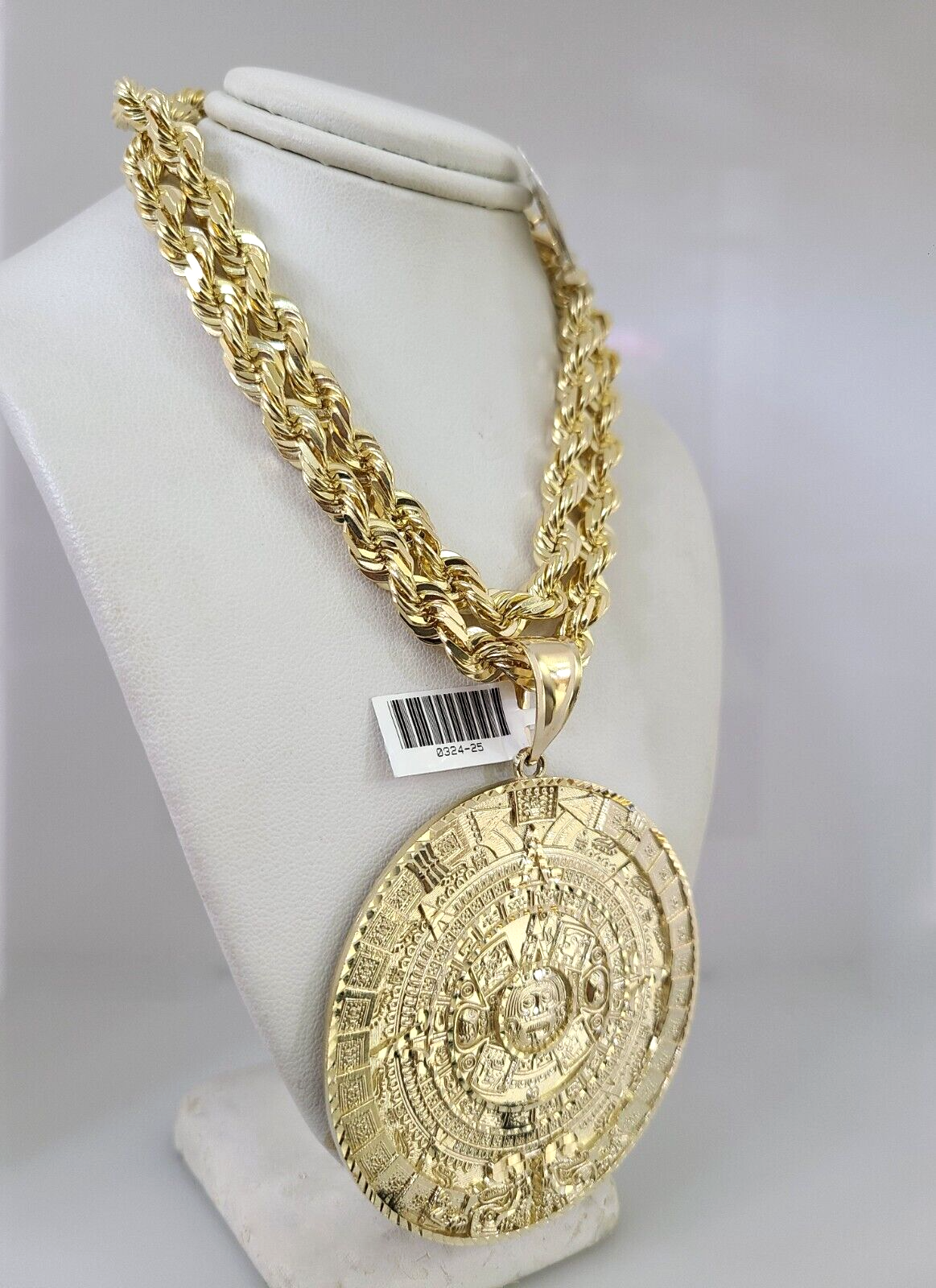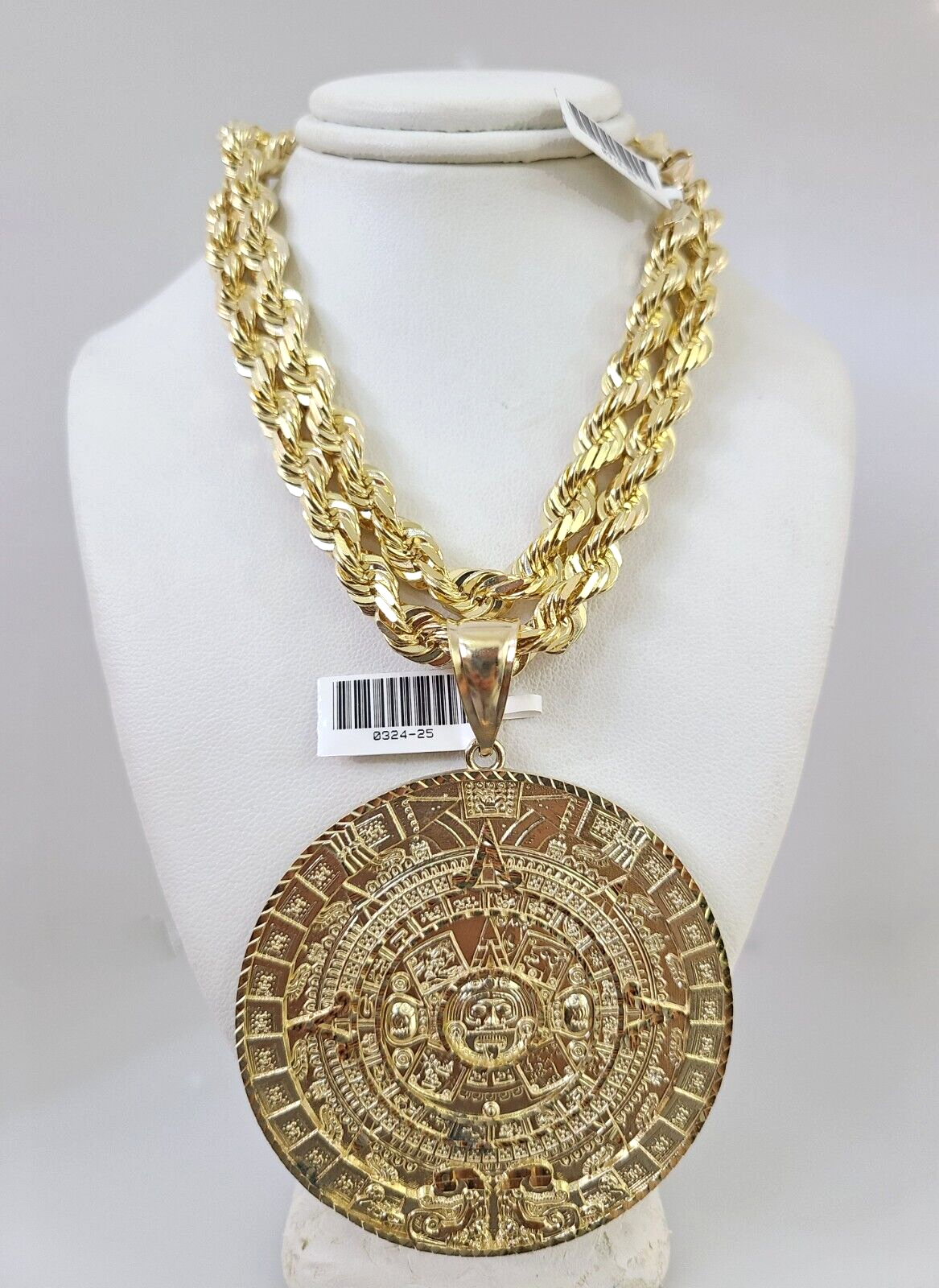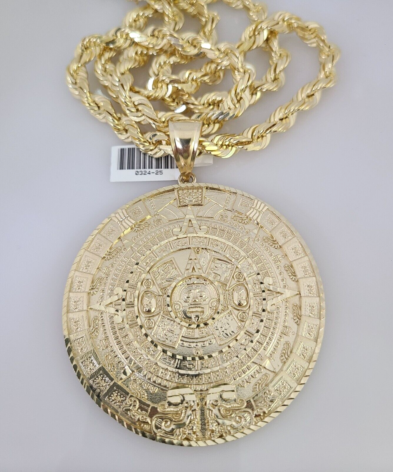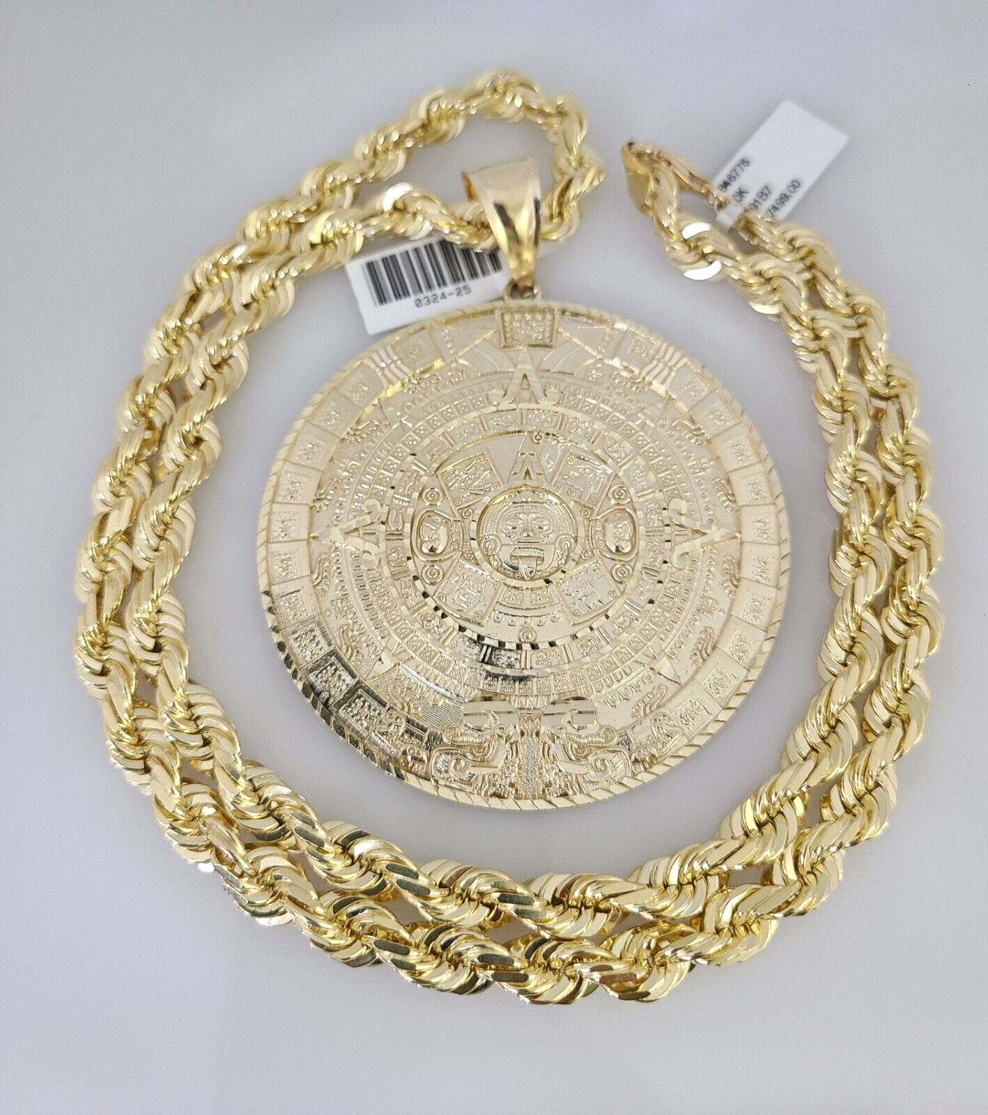 10kt Gold Solid Rope Chain Mayan Calendar Charm Set 18"-30'' Inch 7mm Pendant