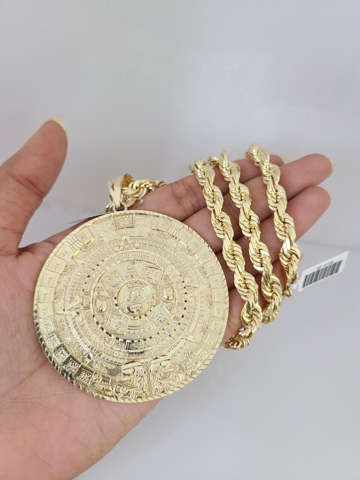 Genuine 10k Yellow Gold Solid Rope Chain 18-30 Inch 7mm Necklace with Mayan Calendar Charm design as a SET. The Various length of the Chain are 18-30 Inches. If you are not happy with the way it looks or feels, we do offer 30 - Days FREE Return shipping. Contact us for more information.