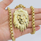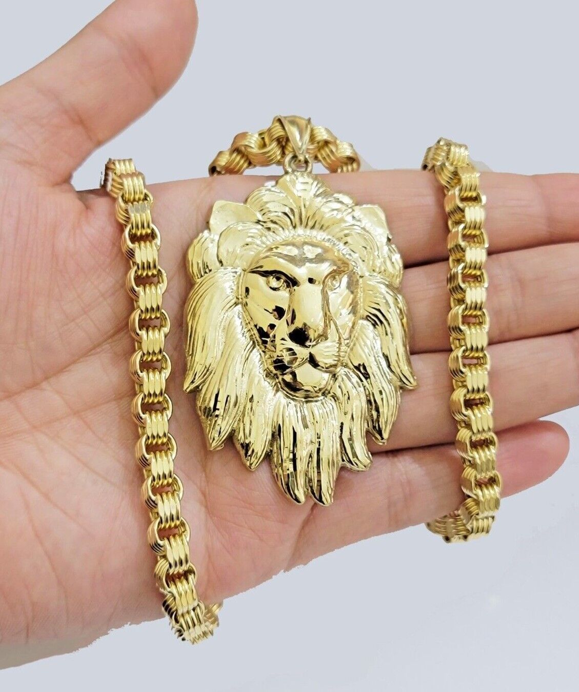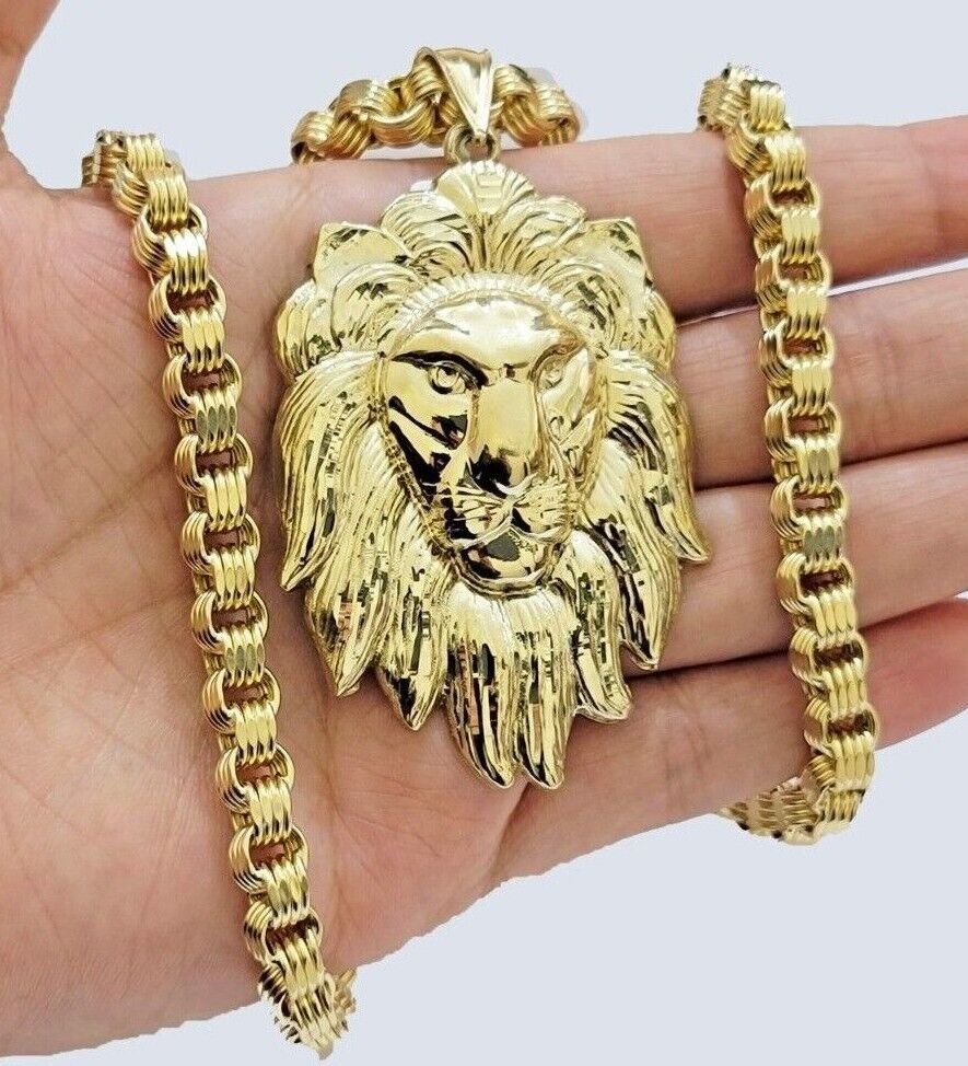 10kt Real Gold Box Byzantine Necklace Lion Charm Pendant SET 28 Inches Chain 6mm
