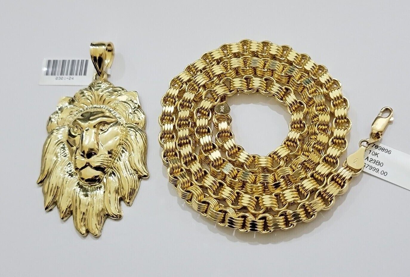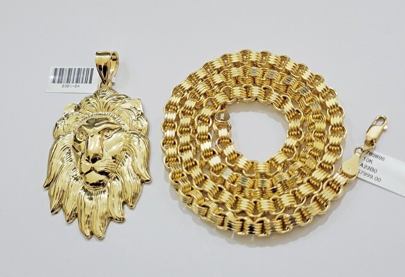 Genuine 10k Yellow Gold Box Byzantine Chain 28 Inch Inch 6mm Necklace With Lion Head Charm design as a SET. The Various length of the Chain are 28 Inch . If you are not happy with the way it looks or feels, we do offer 30 - Days FREE Return shipping. Contact us for more information.