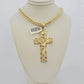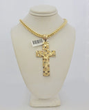 10kt Yellow Gold Franco Chain Necklace Nugget Cross Charm Pendant 5mm 20-26 Inch