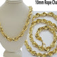 10mm Rope Chain Necklace 10k Yellow Gold 22" Choker Diamond Cut Men's REAL 10kt