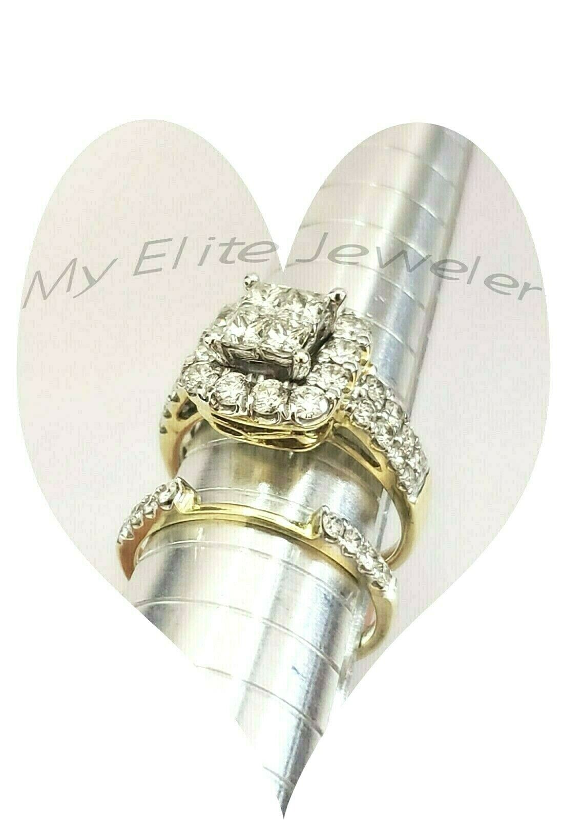 14k Gold 2CT Princess Cut VS Diamond Ladies Ring Bridal set Include Band Round 7
