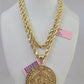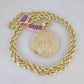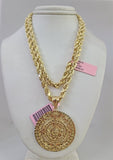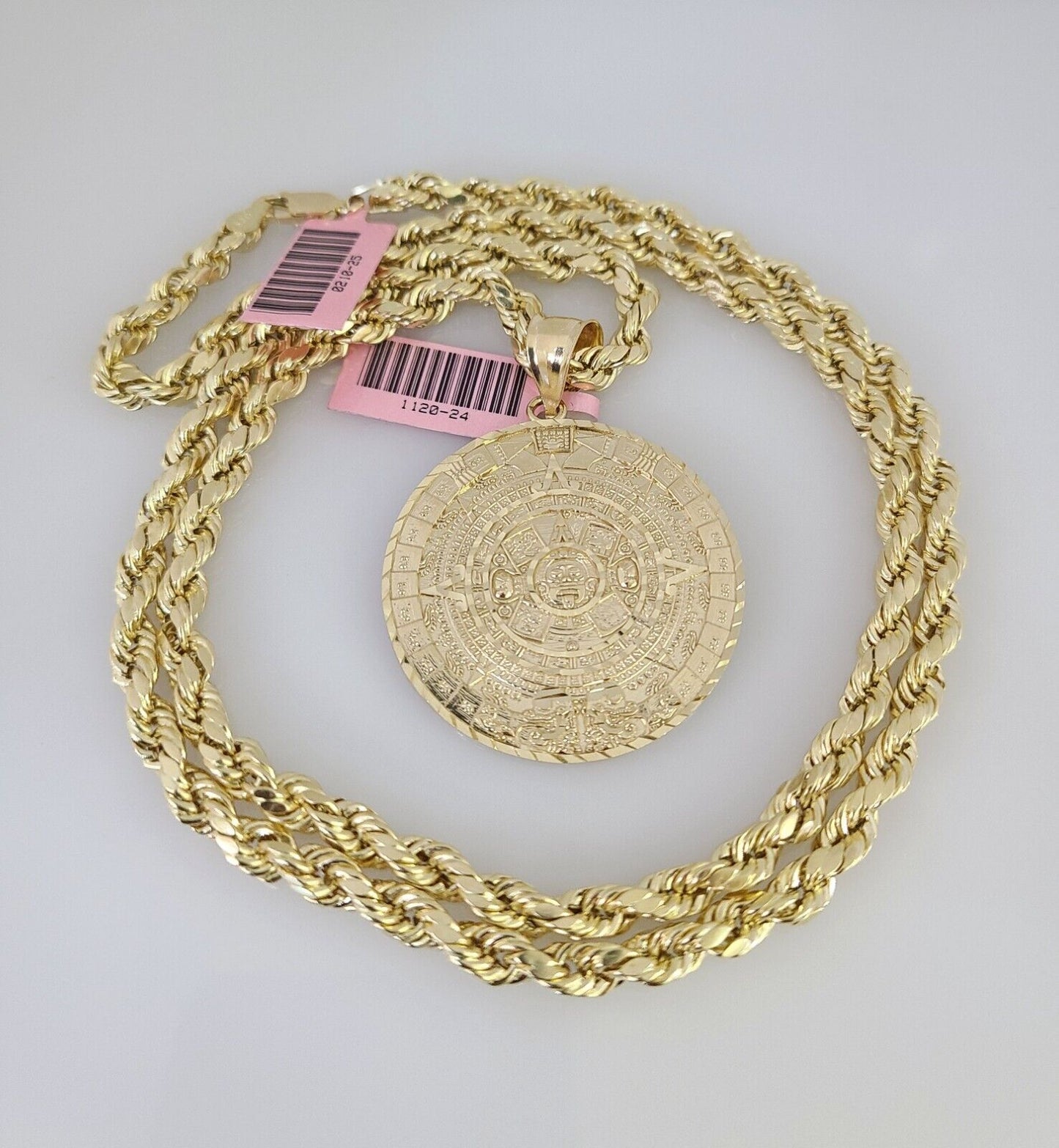 14k Gold Rope Chain Necklace Set 6mm Mayan Calendar Charm Pendant 18"-28" inch
