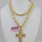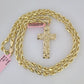 14k Gold Rope Chain Necklace Set 6mm Nugget Cross Charm Pendant 18"-28" inch