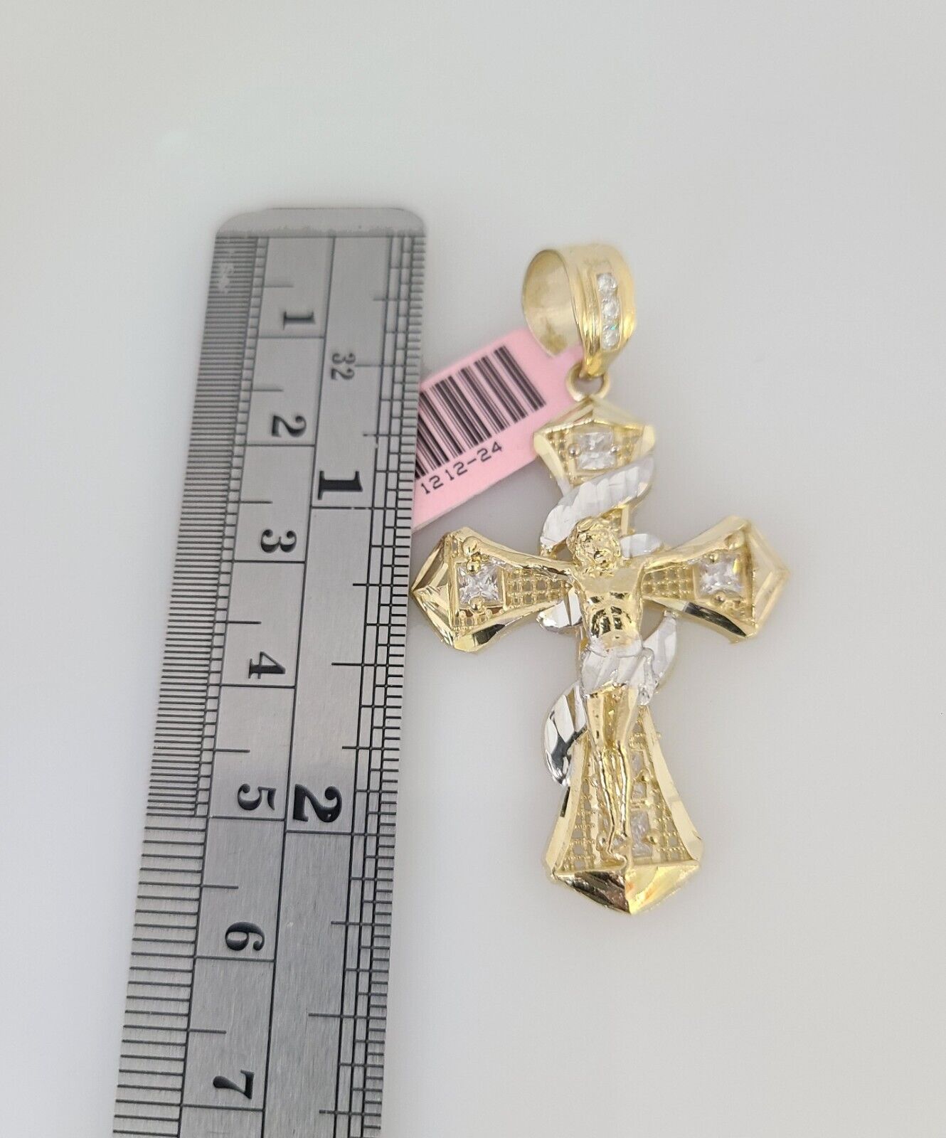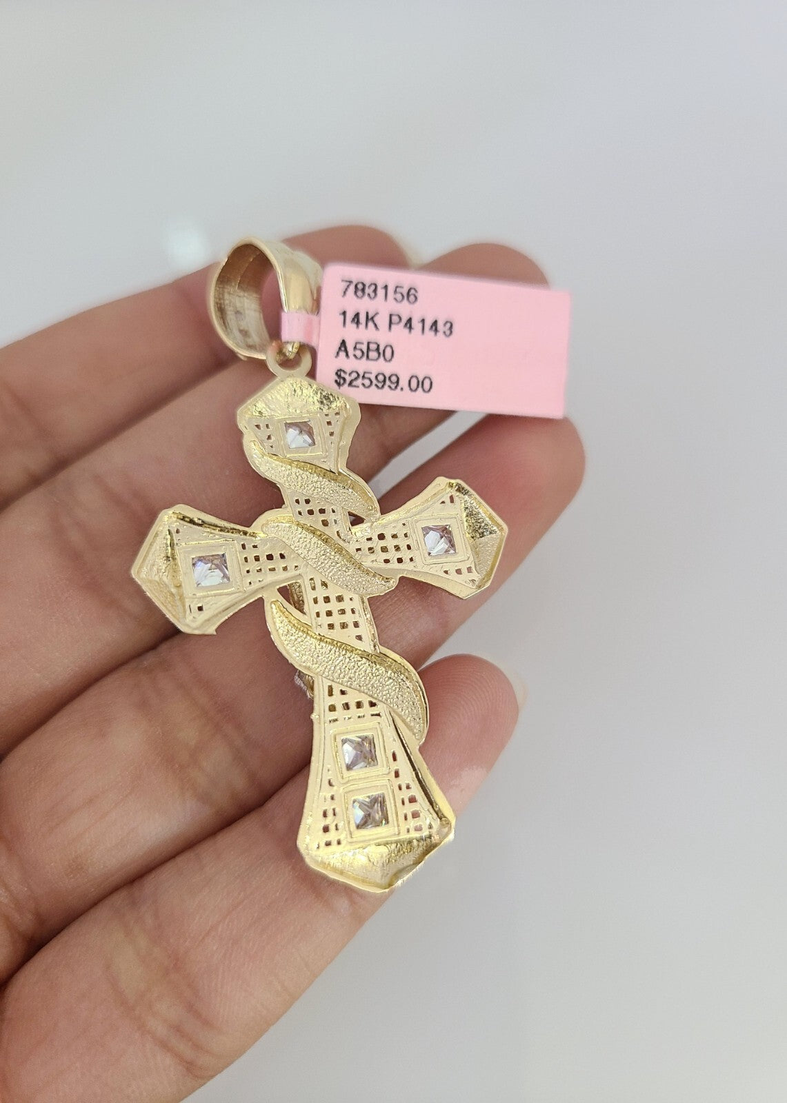 Genuine 14k Yellow Gold Rope Chain 6mm With Spiral Cross design. The Various length of the Chain are 18"-28" with Jesus Crucifix Cross. The pendants are unique in design and considered durable too. The stones are cubic zirconia If you are not happy with the way it looks or feels, we do offer 30 - Days FREE Return shipping. Contact us for more information.
