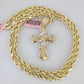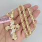 14k Gold Rope Chain Necklace Set 6mm Spiral Cross Charm Pendant 18"-28" inch