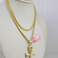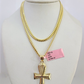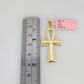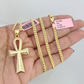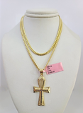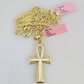 14k Gold Solid Chain Ankh Cross Pendant Set 14kt Miami Cuban Link 3mm Charm