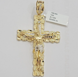 14k Yellow Gold charm Cross Pendant Nugget Jesus Crucifix 3.75" 14kt Men's REAL