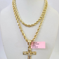 14kt Gold Rope Chain Necklace Nugget Cross Charm Pendant 20-30 Inch 4mm
