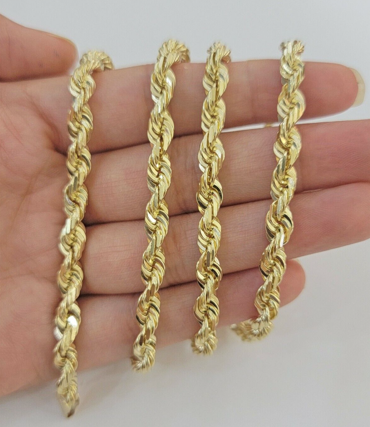 6mm Rope Chain Necklace 10k Yellow Gold Solid 20 Inch Dimond Cuts REAL 10kt GOLD
