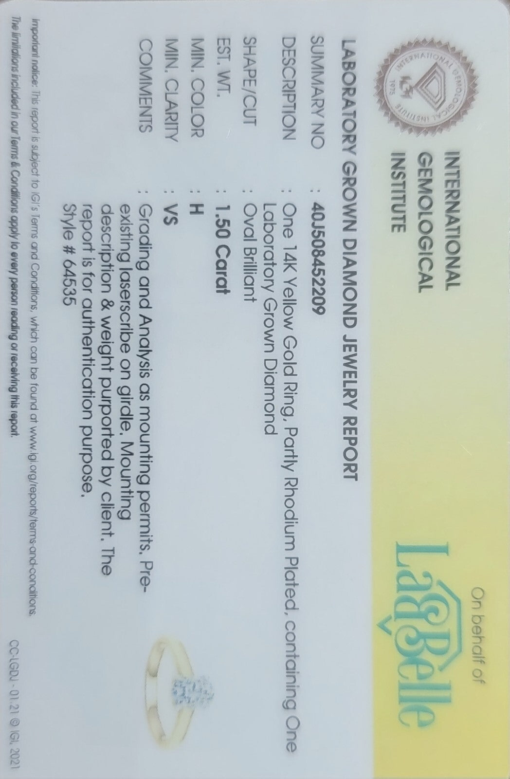 | Total Carat Weight: 1.5 | Certification: IGI |