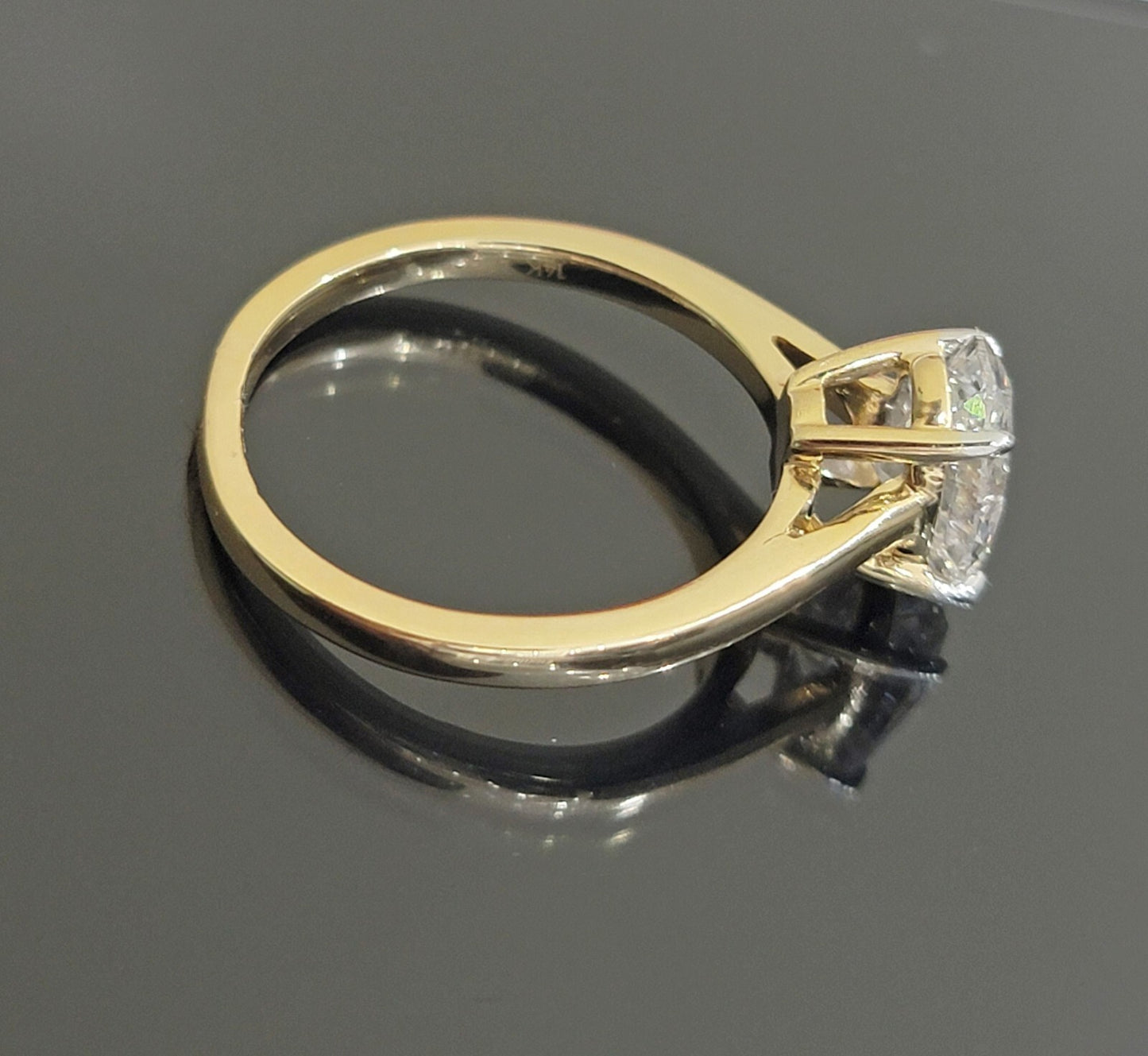 Real 14 K Yellow gold and Real 1.5 CT Solitaire Oval Shaped Diamond Wedding / Engagement/ Anniversary Ring for Ladies. It has Very Good Quality VS Diamond Clarity. The Diamonds are Excellent Oval Cut. It flaunts Extra ordinary Bridal design ring. It comes with standard size 7, and the ring is sizable. Sizing the ring will cost you extra $39.99 on your demand.