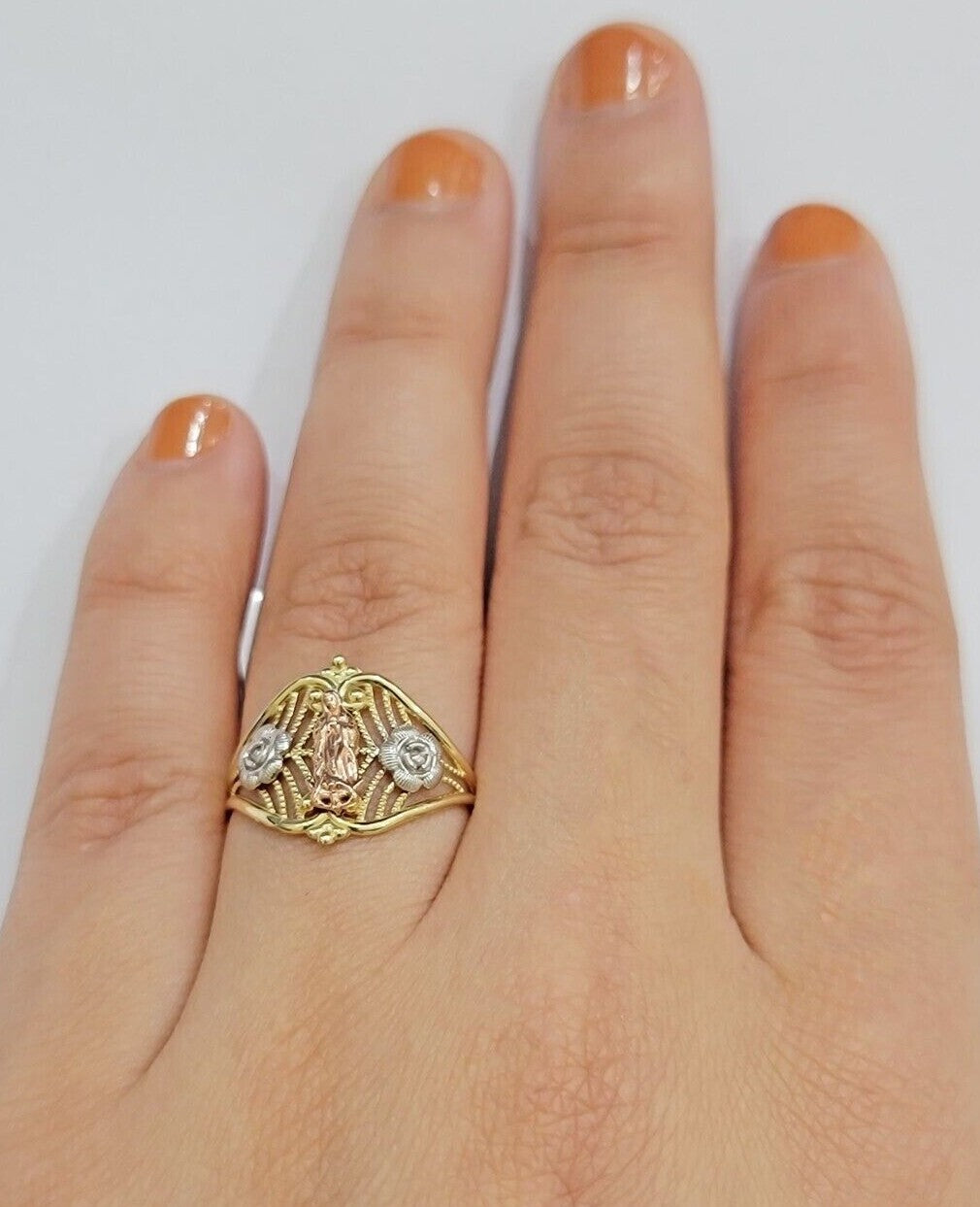 Ladies Ring 10k Yellow Gold Virgin Mary Cross 10KT REAL Gold Unique Size 7 SALE