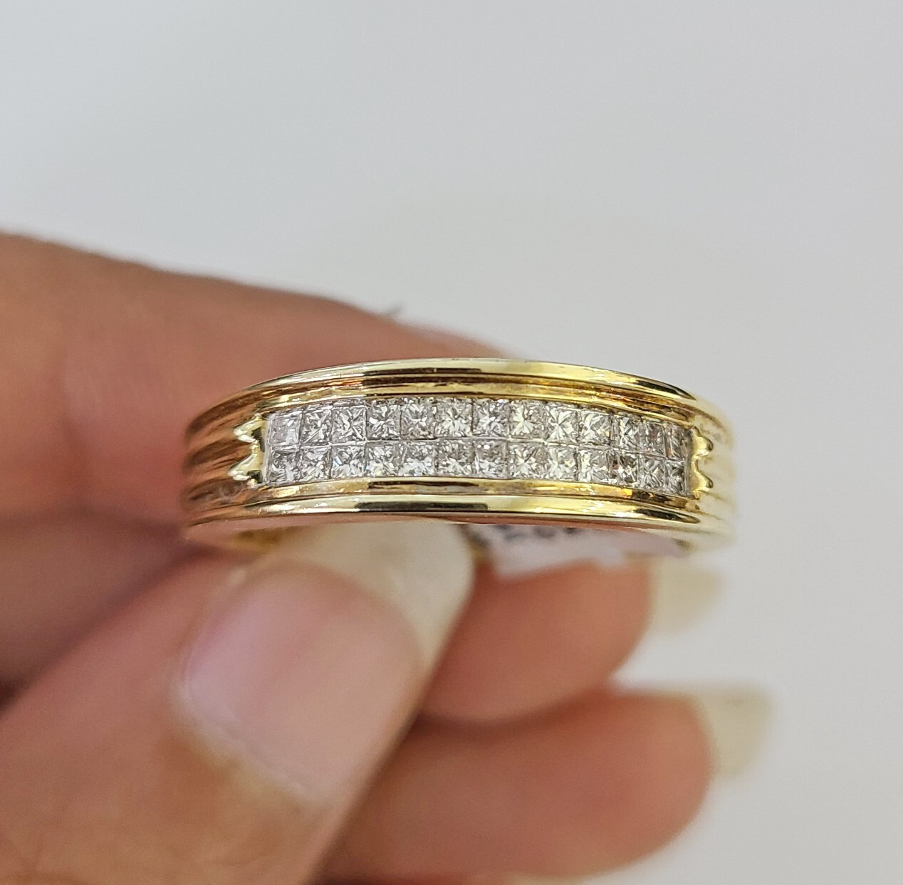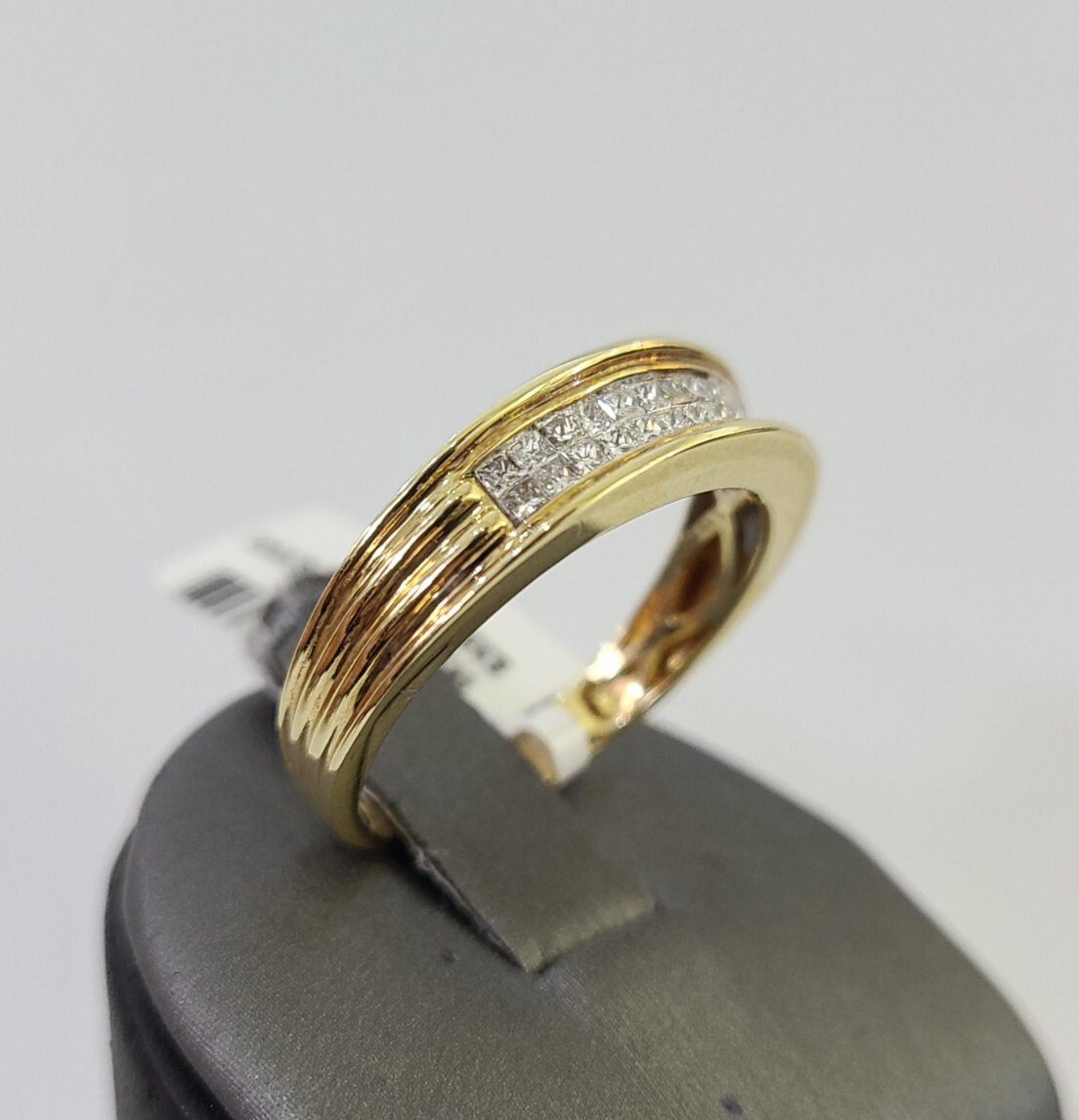 Real 14k Diamond Ring Men Band Natural Diamonds and Genuine 14kt Yellow Gold