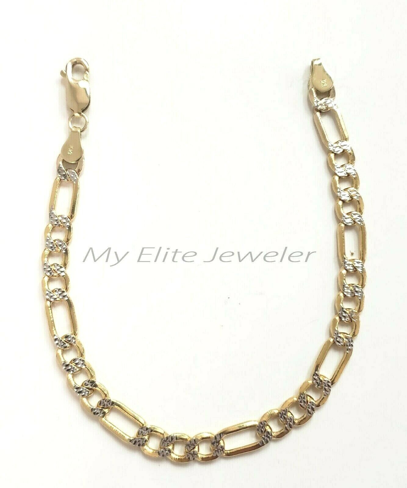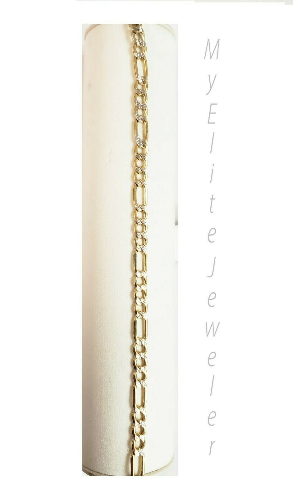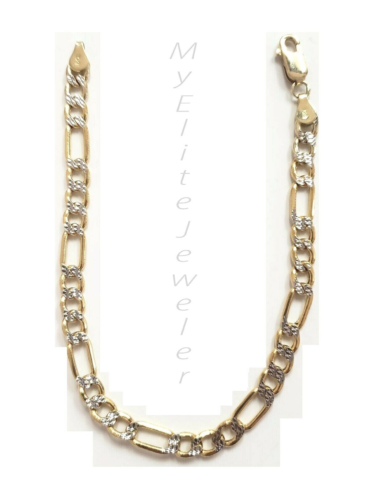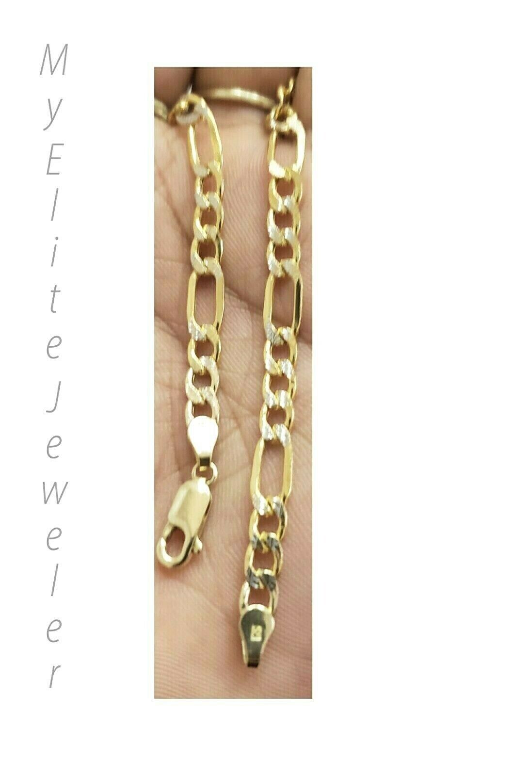 10 k Yellow Gold ( Real , Not plated , Not filled ) Figaro-Link Bracelet For Both Men's & Women's. The Width of the Bracelet is 5 mm and 8 Inch Long . The Clasp is Lobster Lock which is strong and safe lock for the bracelet. The bracelet is beautiful designed with Figaro Link diamond Cut style. If you are not happy with the way it looks or feels, we do offer 30 - Days FREE Return shipping. If the bracelets do not fits your wrist then contact us for exchange and just pay the difference before you make up your mind for returning the item. Your satisfaction is our responsibility.