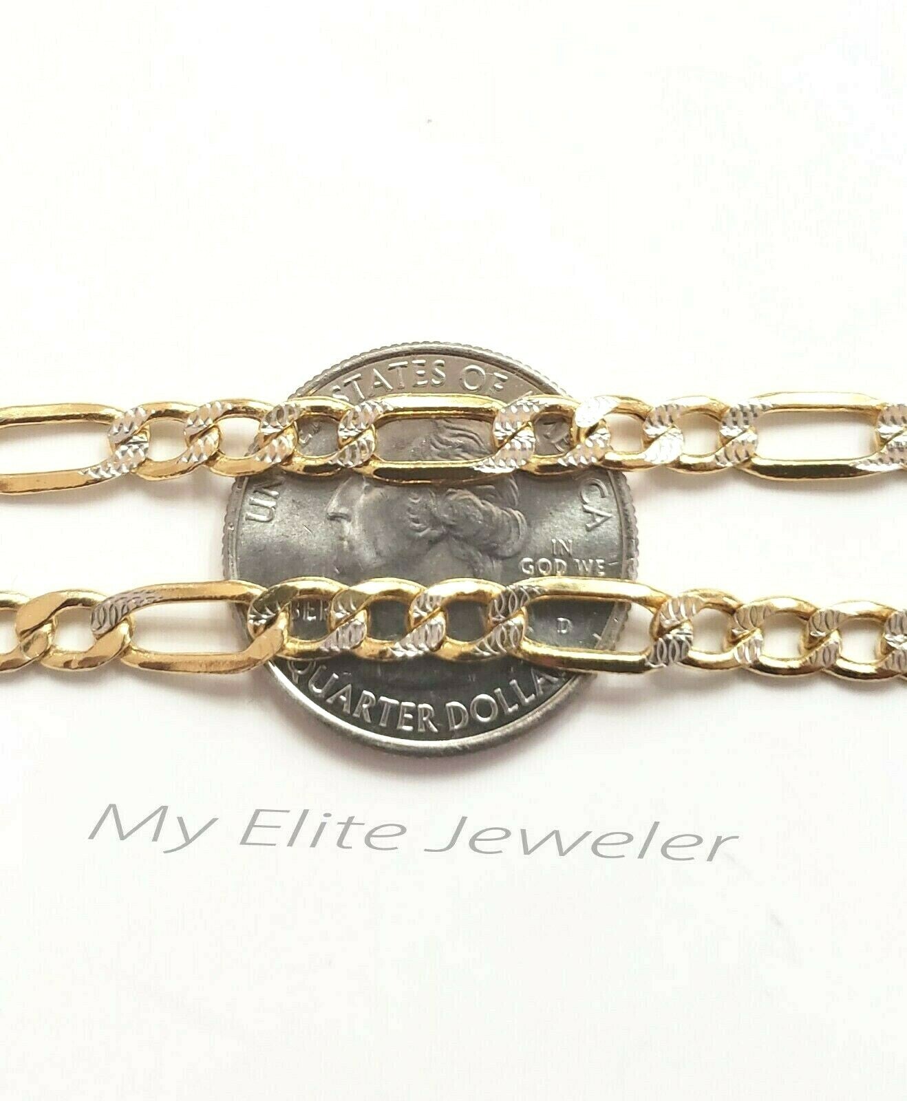 Men's Ladies Figaro Diamond Cut Bracelet 10 K Yellow Gold 5 mm 8 Inch Long