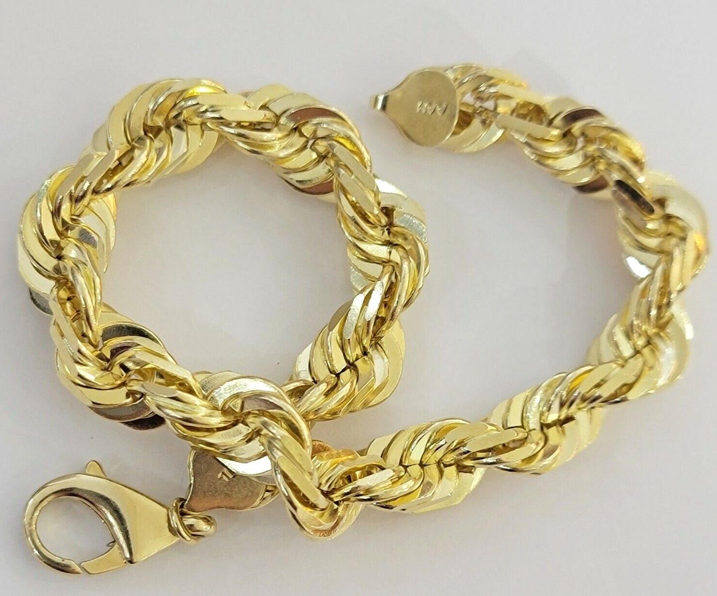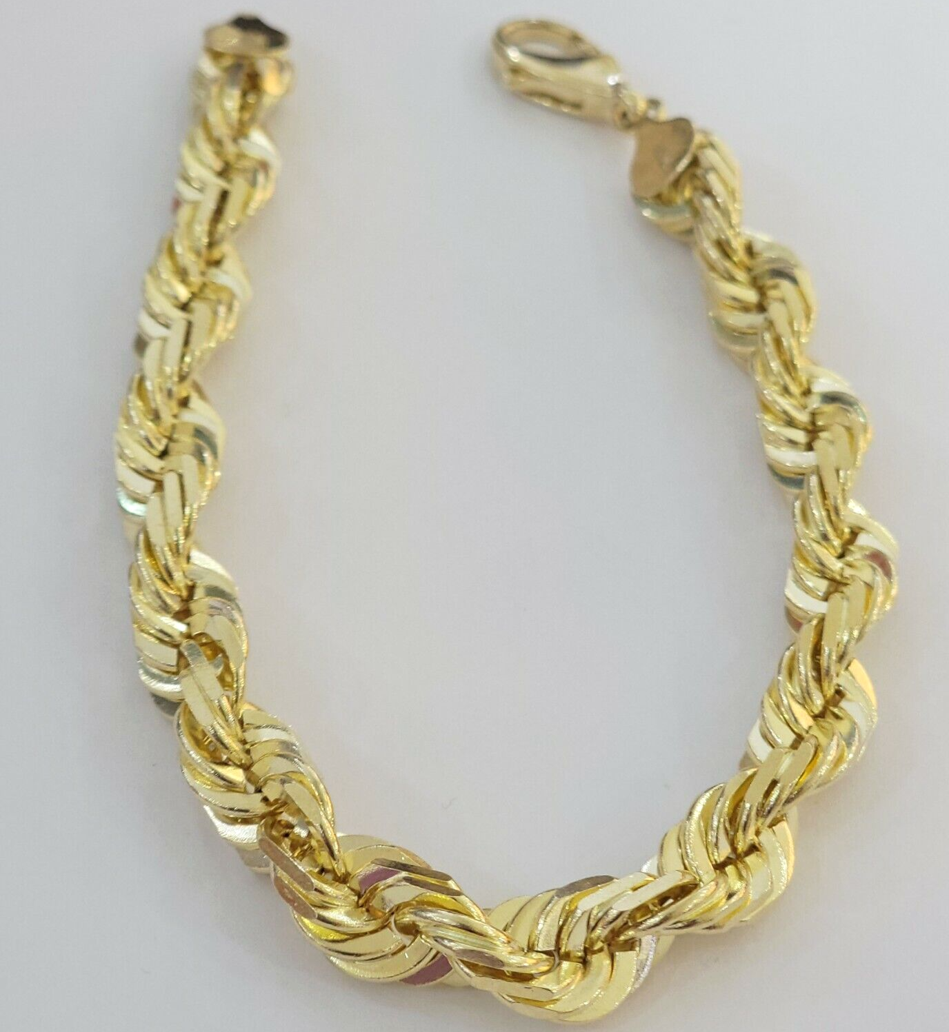 Mens Real 10k Gold Rope Bracelet 9 Inch 10.5mm Diamond Cut Solid 10KT Yellow Gld