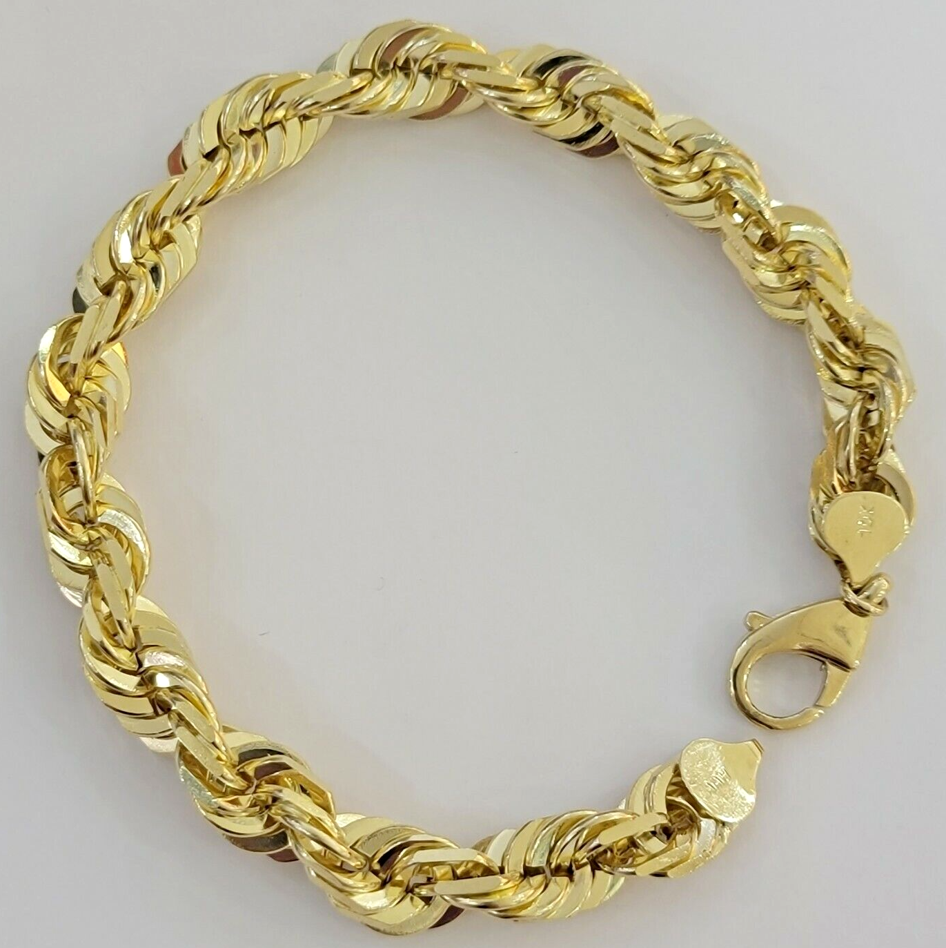 10.5mm 10k Yellow Gold Rope Bracelet 9" Diamond Cut Real Solid Link, HEAVY WEIGHT