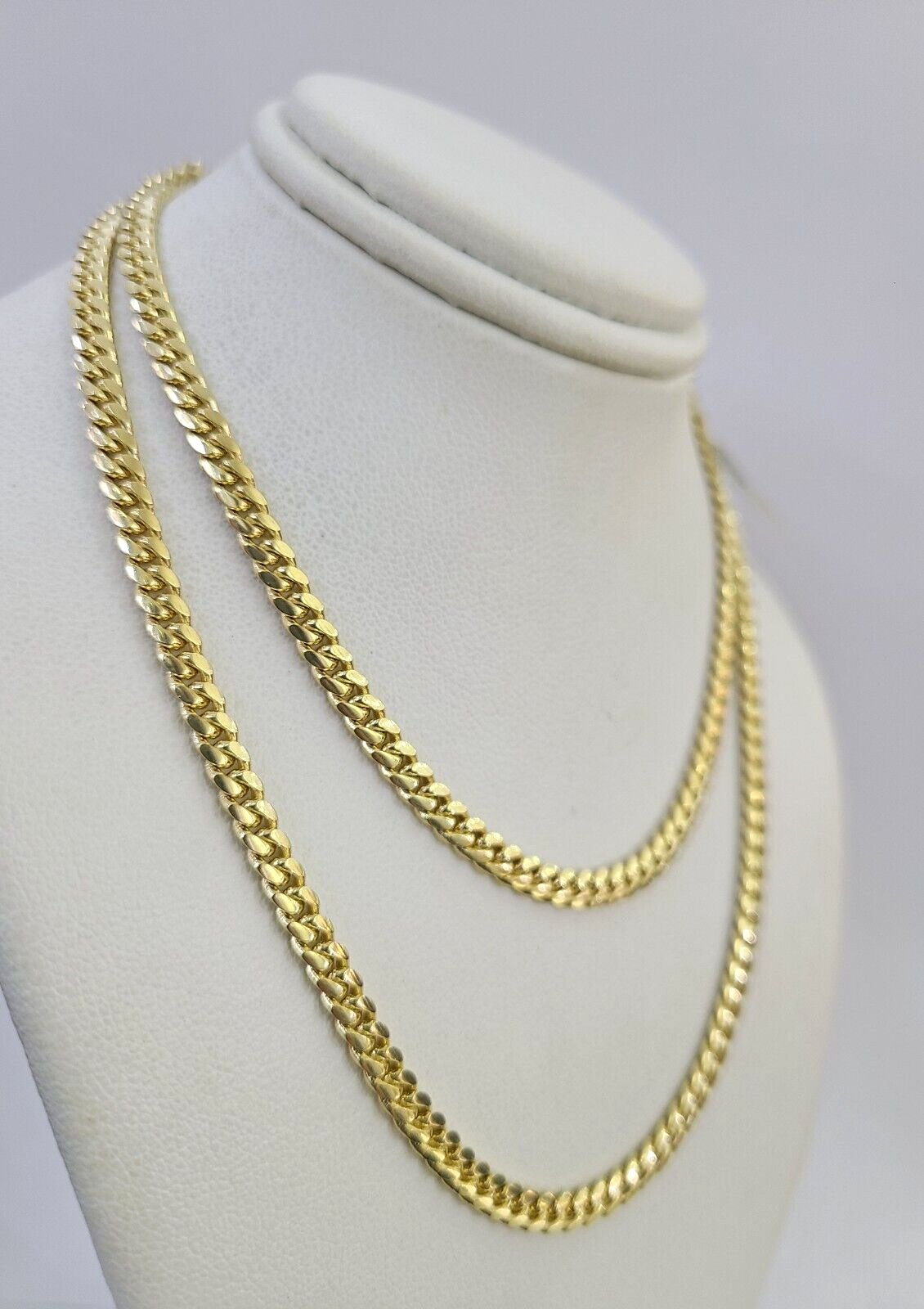 Real 10k Chain Solid 4mm Solid Miami Cuban Link Necklace 24 Inch Yellow Gold