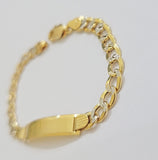 Kids REAL 10k Gold Bracelet ID Cuban curb Link Two-tone style 5mm 6 Inch Baby Bracelet