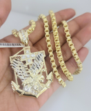 Real 10k Gold Box Byzantine Necklace Eagle Anchor Charm Pendant SET Chain 20-30 Inch 4mm