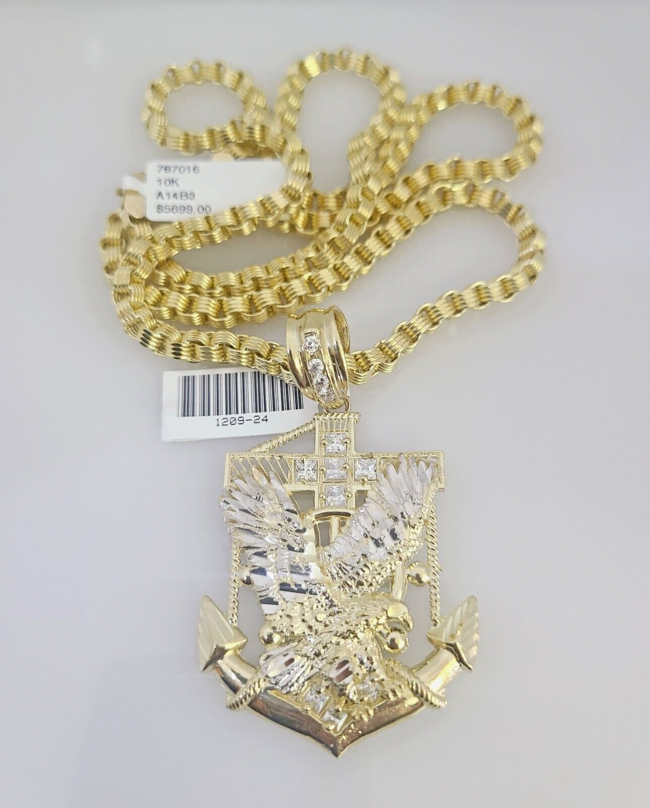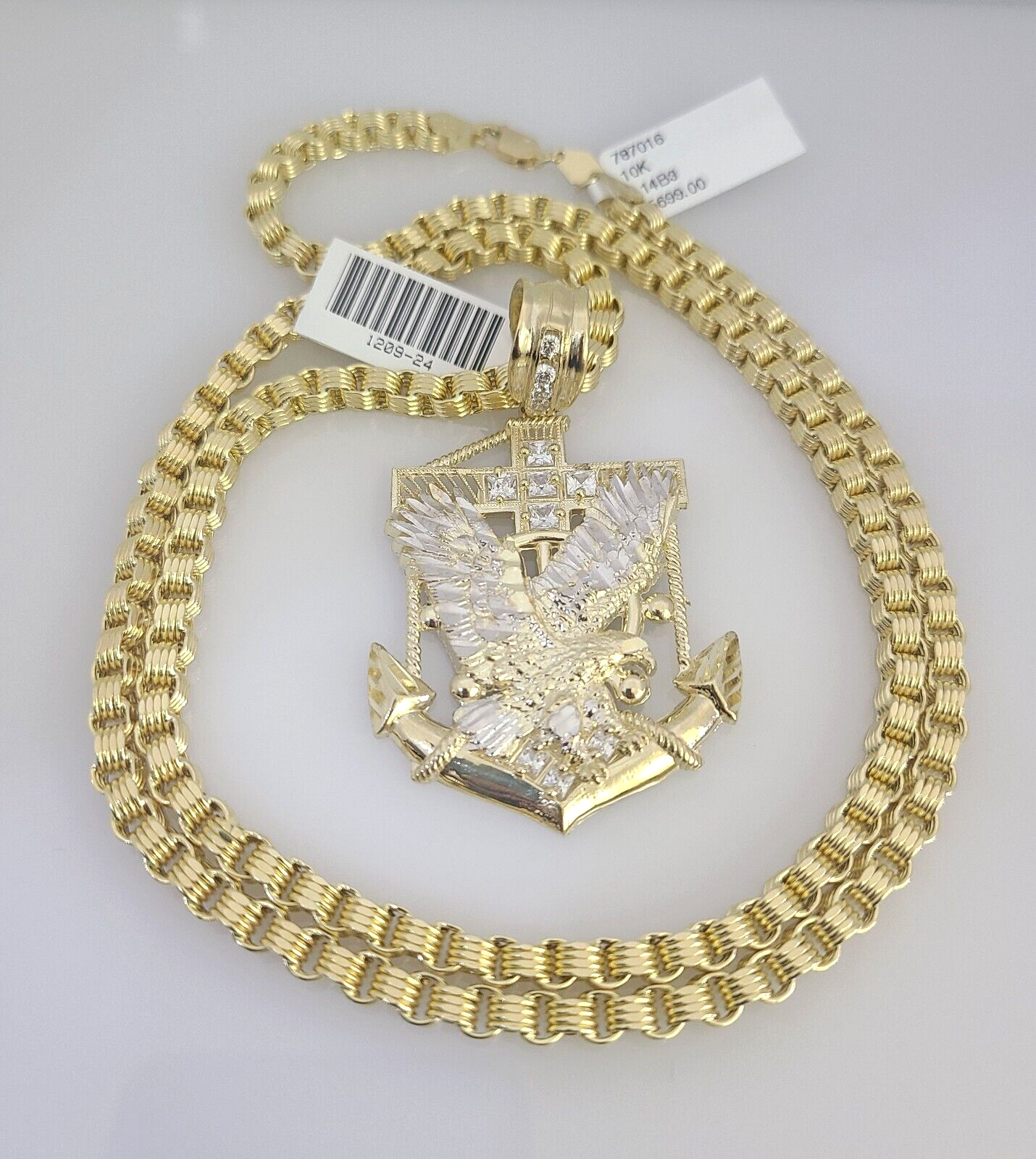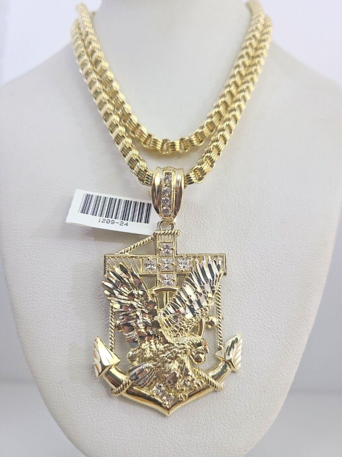 Real 10k Gold Byzantine Necklace Eagle Anchor Charm SET Chain 20"-30" 4mm