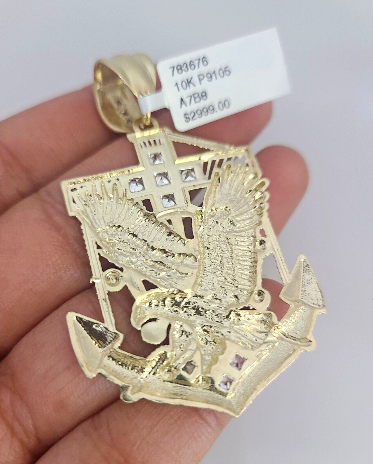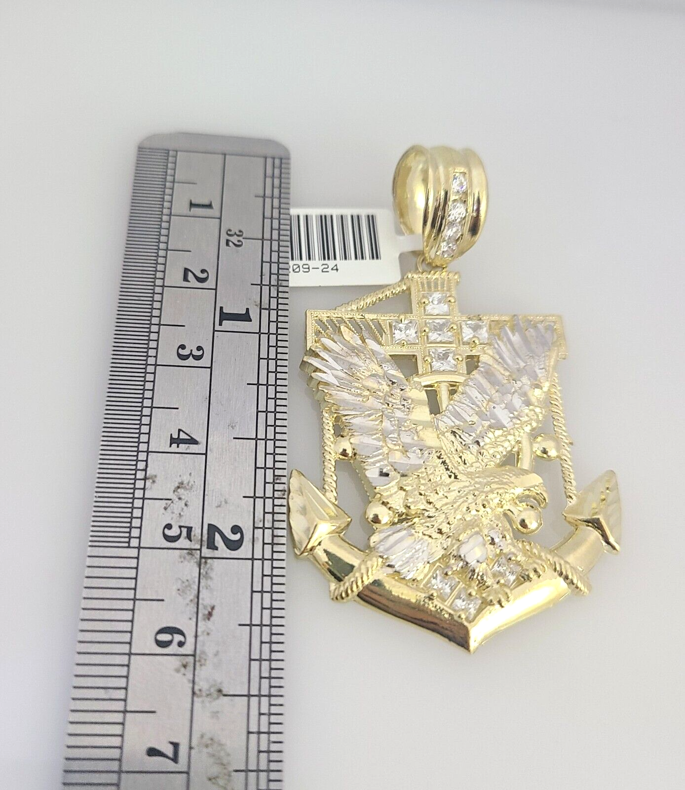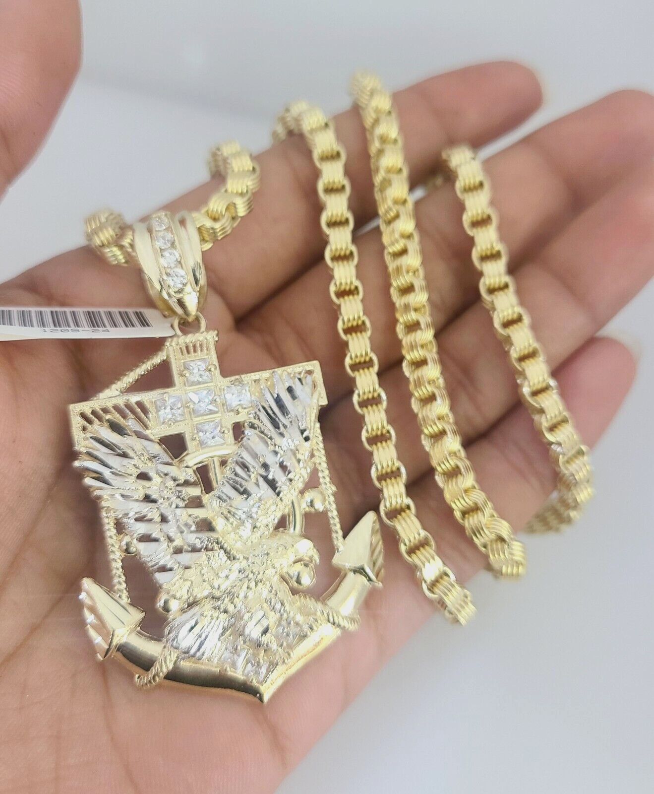 Real 10k Gold Byzantine Necklace Eagle Anchor Charm SET Chain 20"-30" 4mm