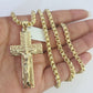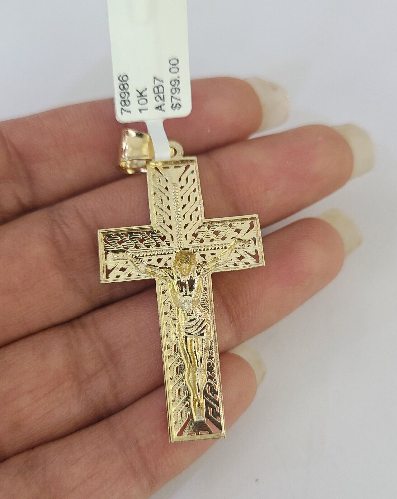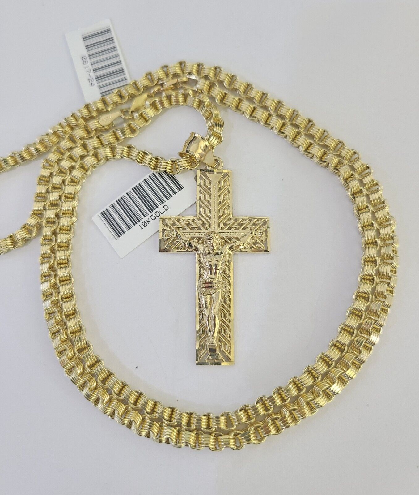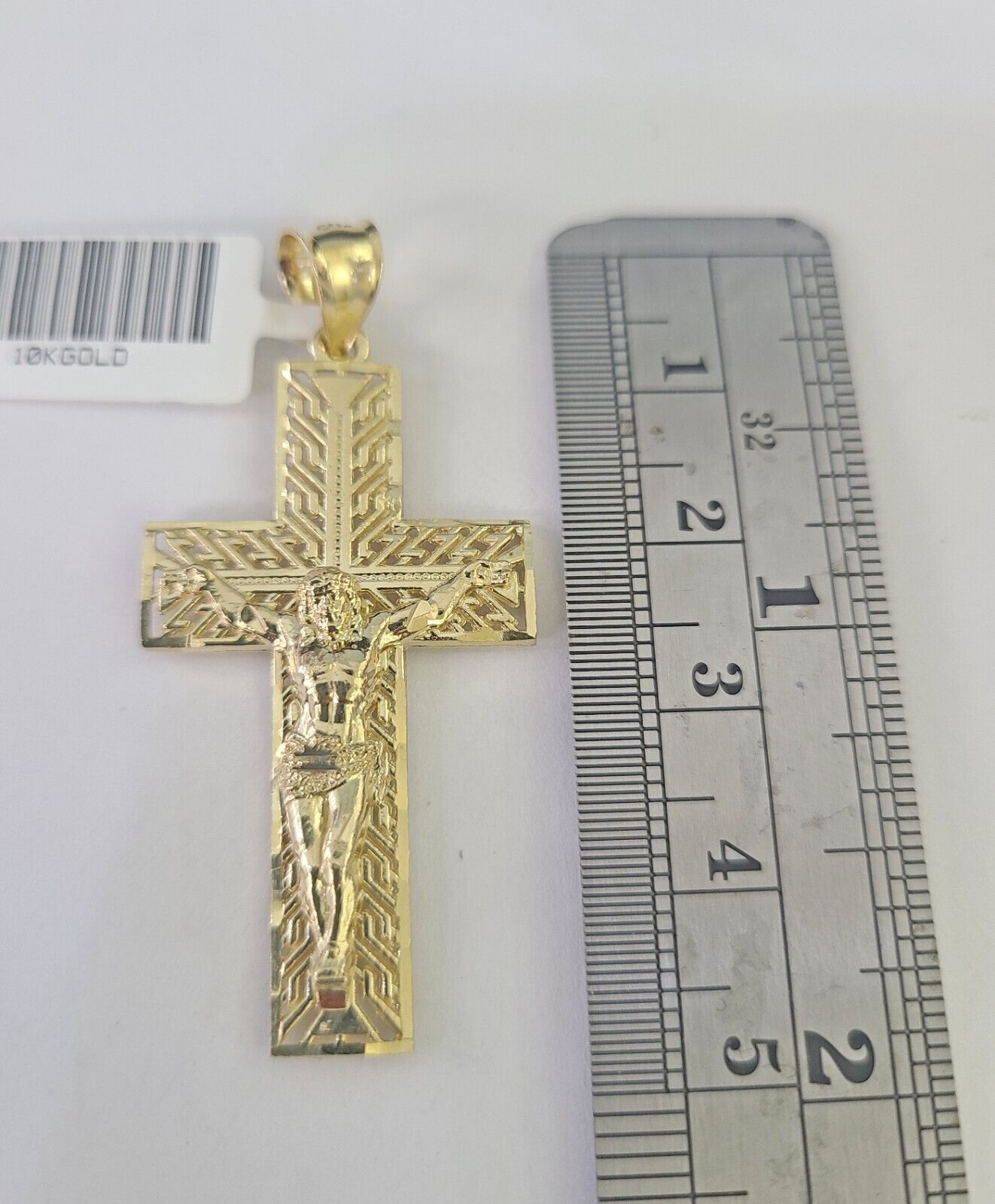 Real 10k Gold Byzantine Necklace Jesus Cross Charm SET Chain 18"-30" 3mm Pendant