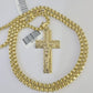 Real 10k Gold Box Byzantine Necklace Jesus Cross Charm Pendant SET Chain 18-30 Inch 3mm