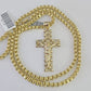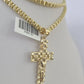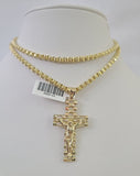 Real 10k Gold Box Byzantine Necklace Jesus Cross Charm Pendant SET Chain 18-30 Inch 3mm
