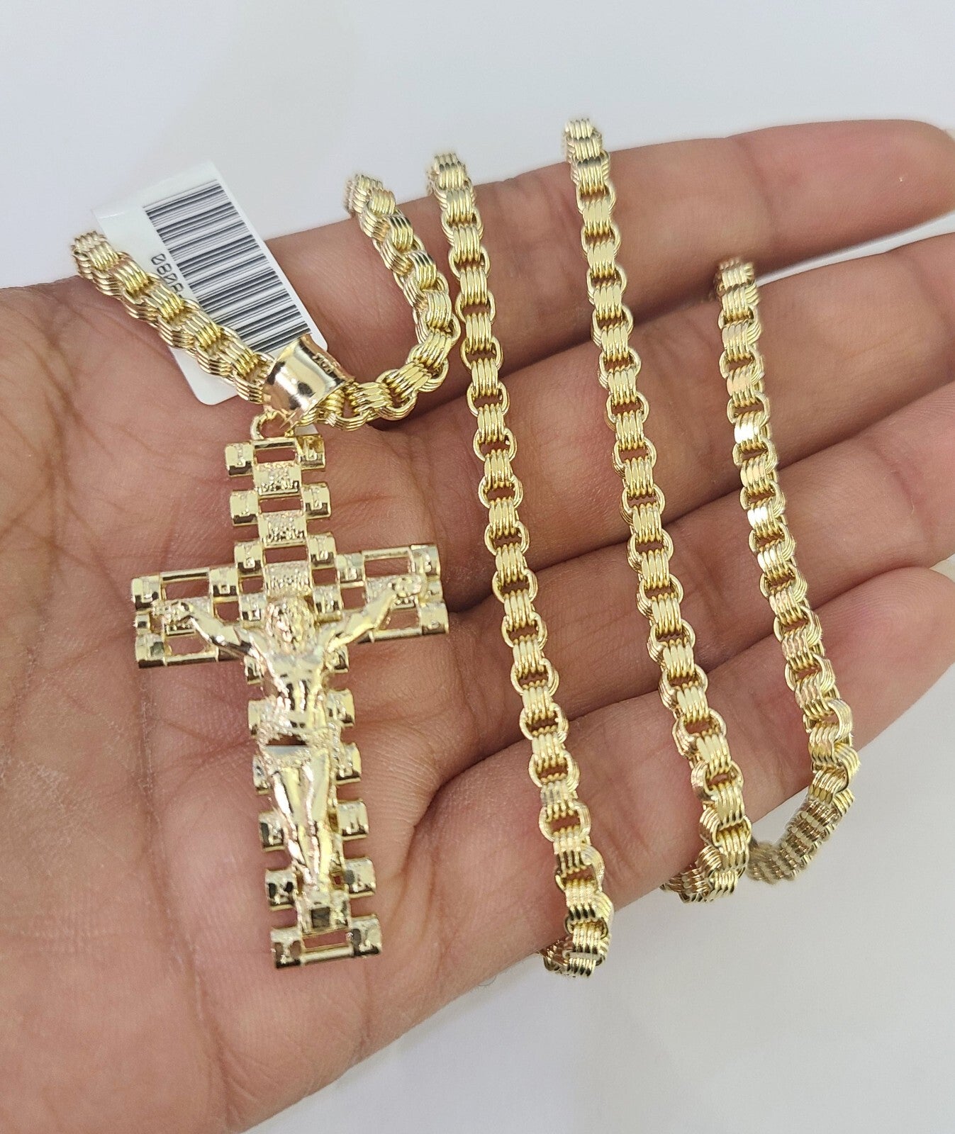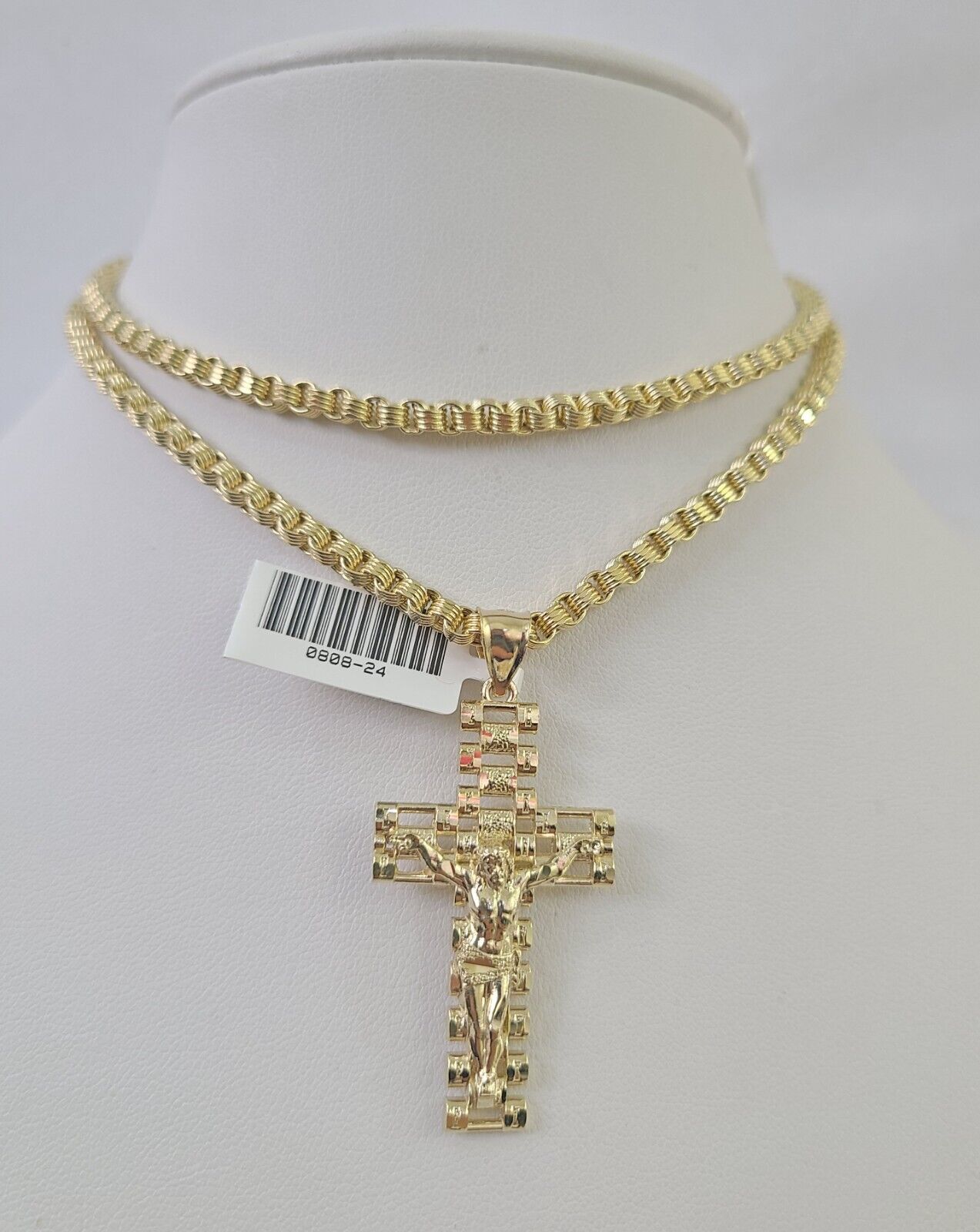 Genuine 10k Yellow Gold Box Byzantine Chain 18-30 Inch Inch 3mm Necklace With Jesus Cross design as a SET. The Various length of the Chain are 18-30 Inch . If you are not happy with the way it looks or feels, we do offer 30 - Days FREE Return shipping. Contact us for more information.