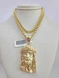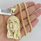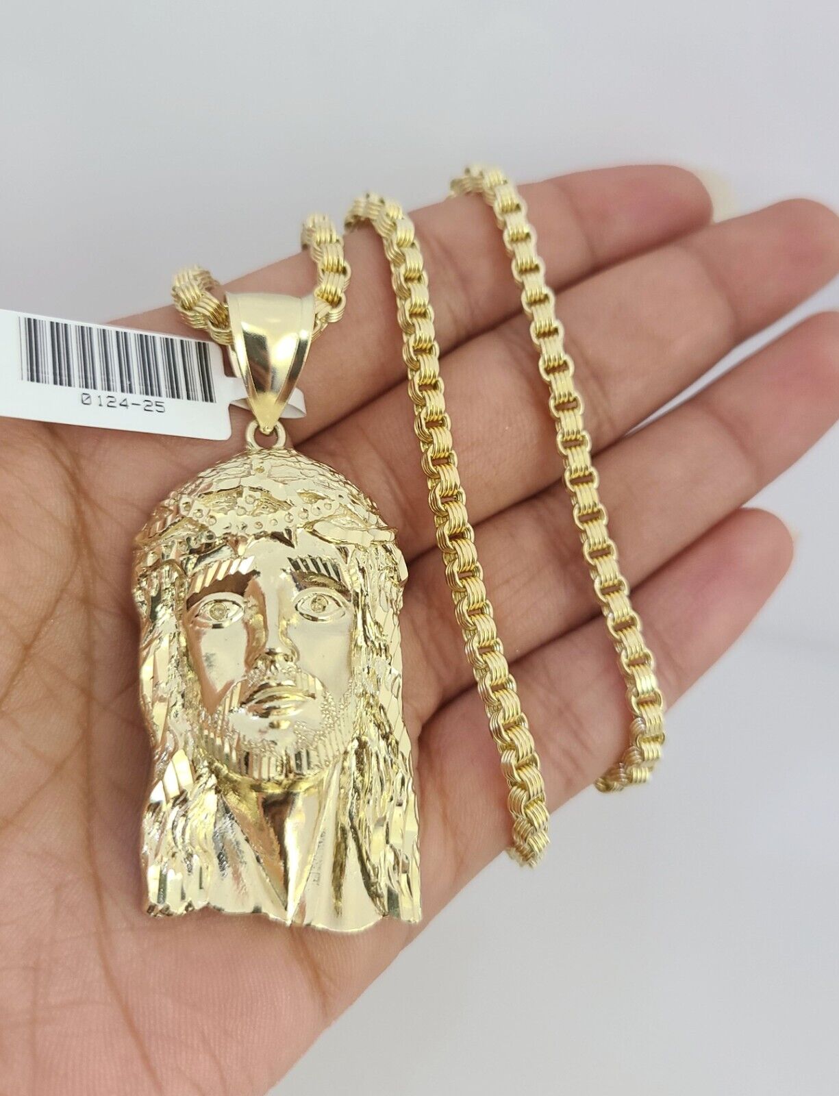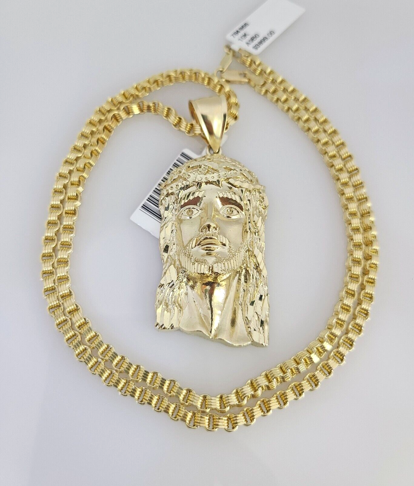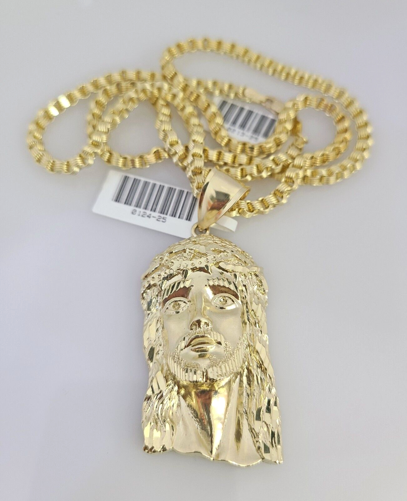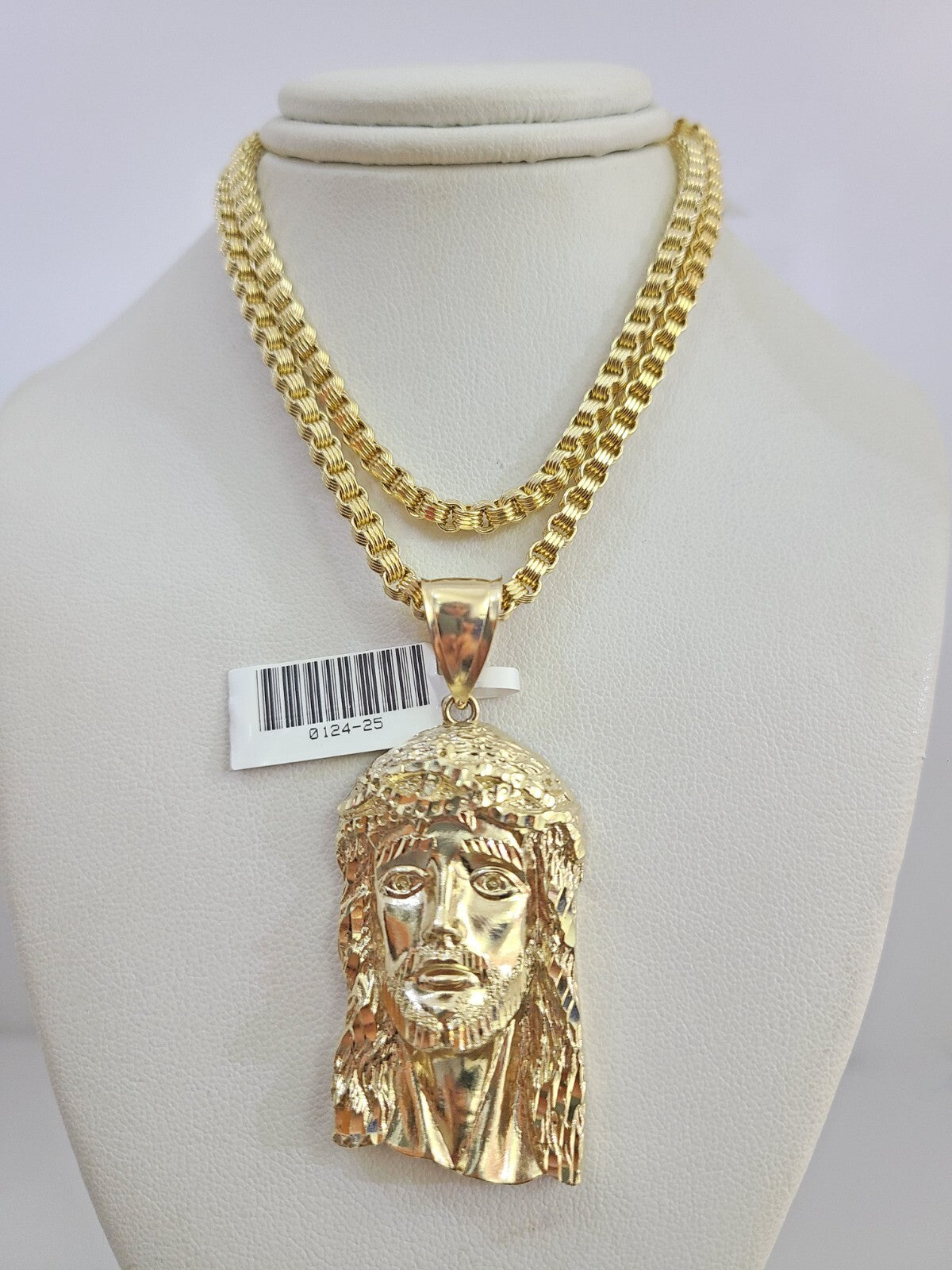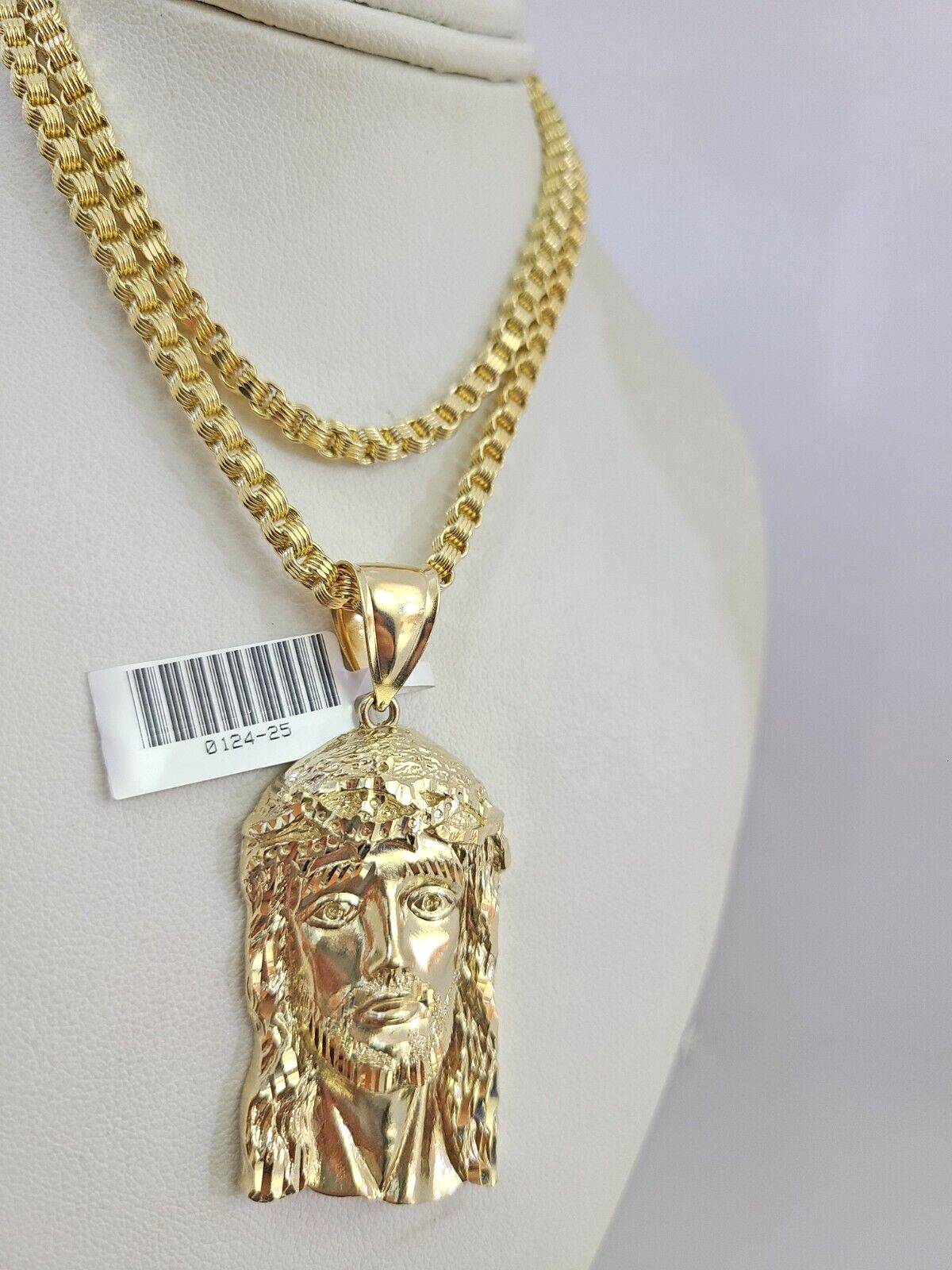 Real 10k Gold Byzantine Necklace Jesus Head Charm SET Chain 20"-30" 3mm Pendant