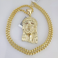 Real 10k Gold Box Byzantine Necklace Jesus Head Charm Pendant SET Chain 20-30 Inch 3mm