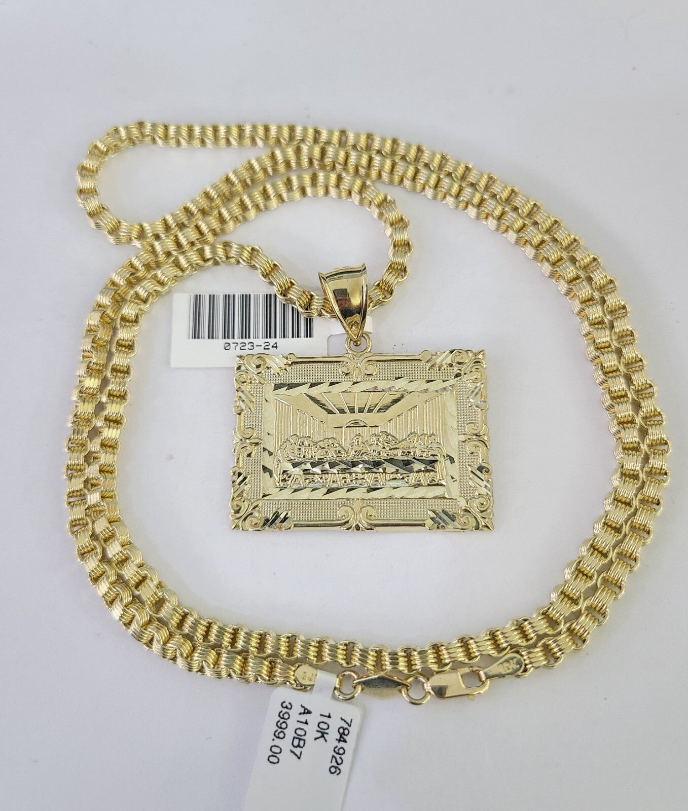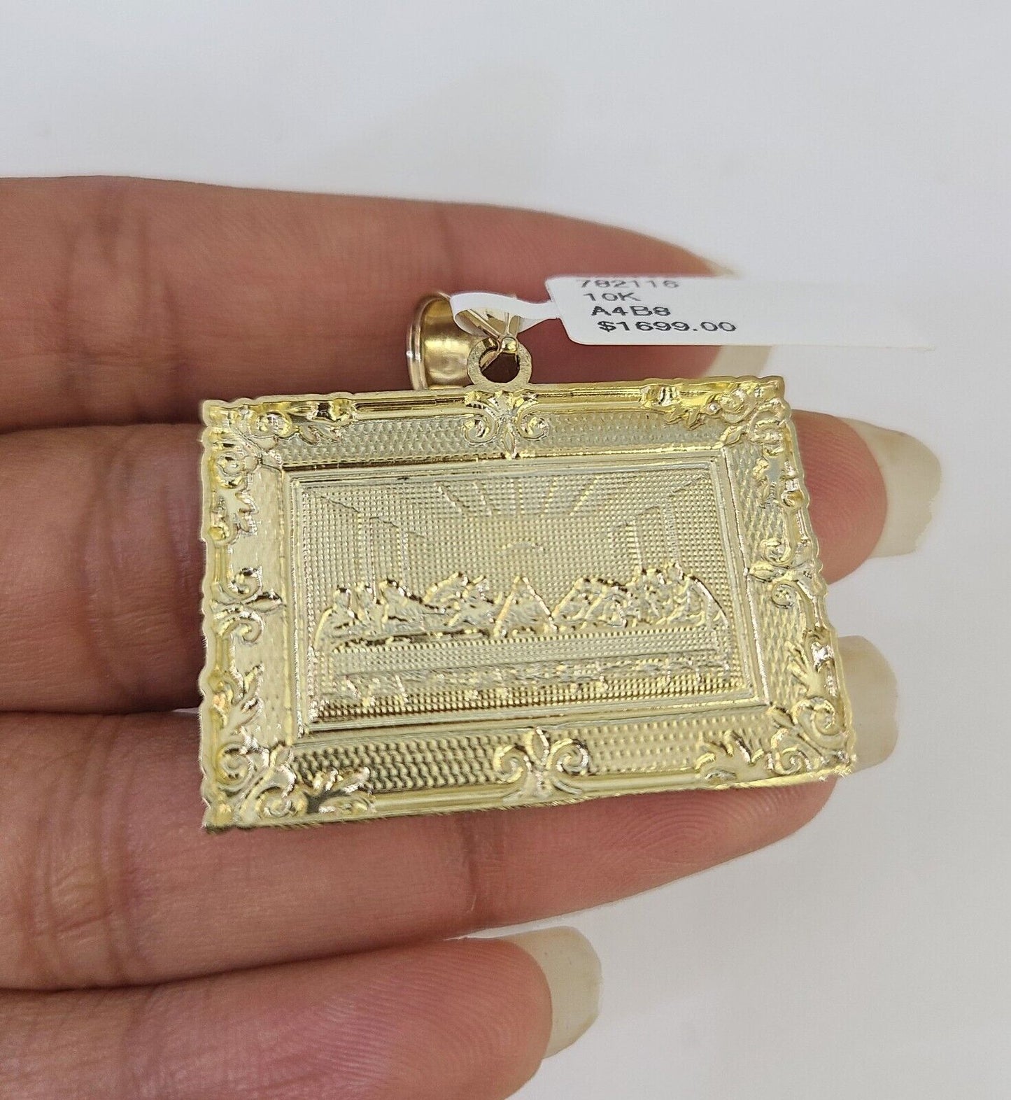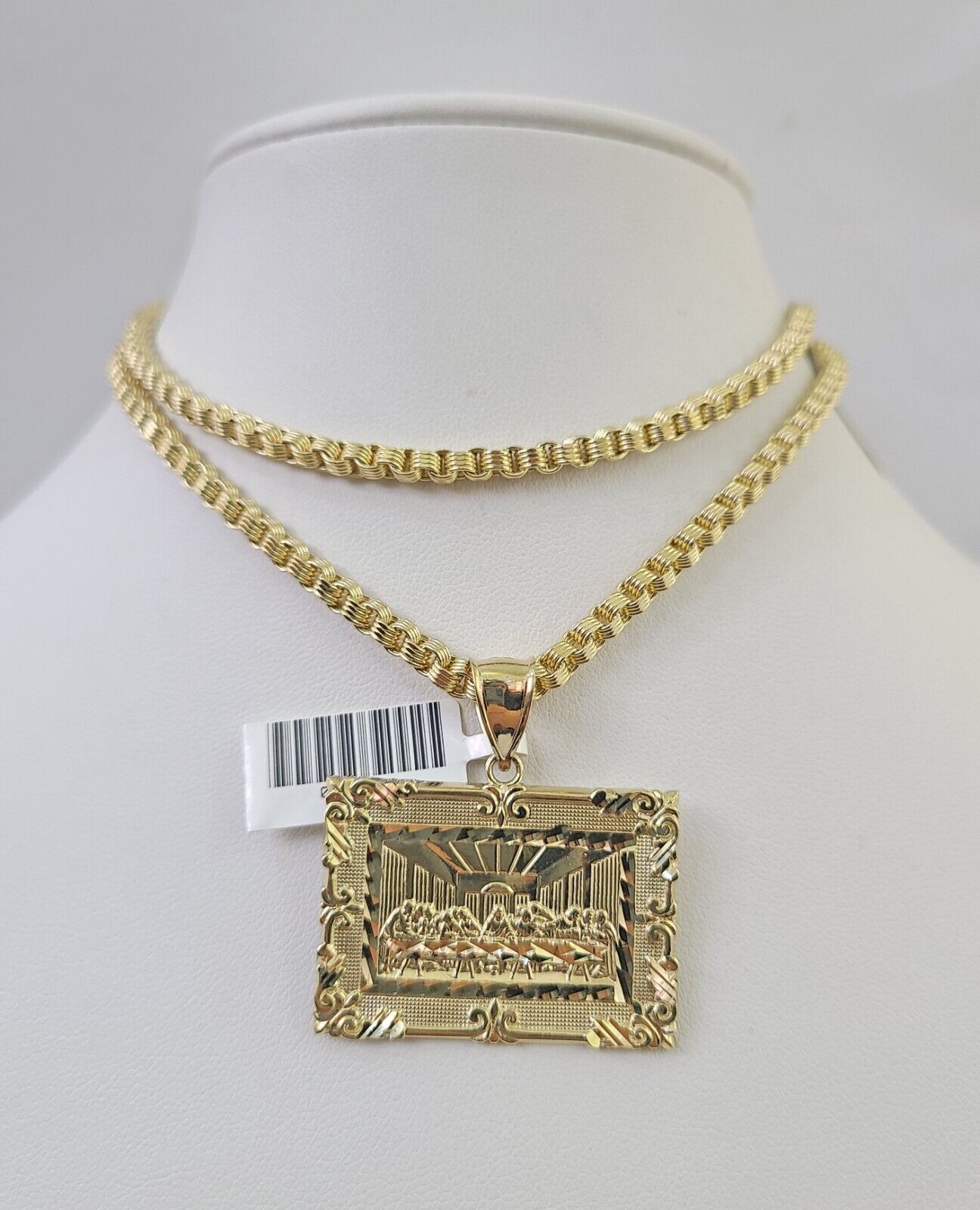 Real 10k Gold Box Byzantine Necklace Last Supper Charm Pendant SET Chain 18-30 Inch 3mm