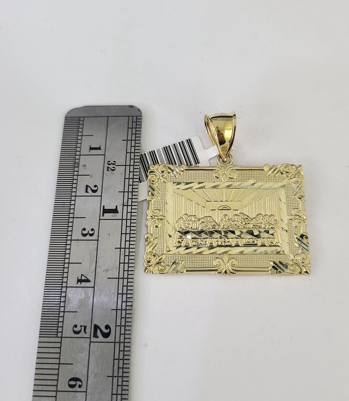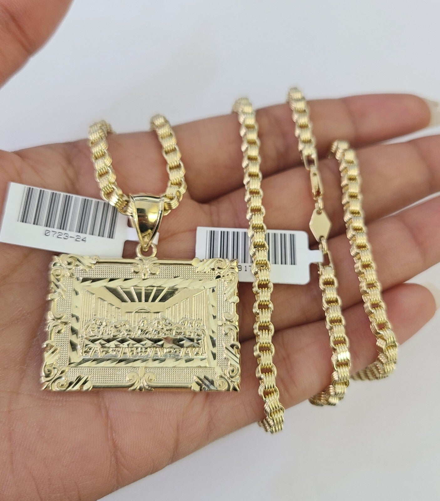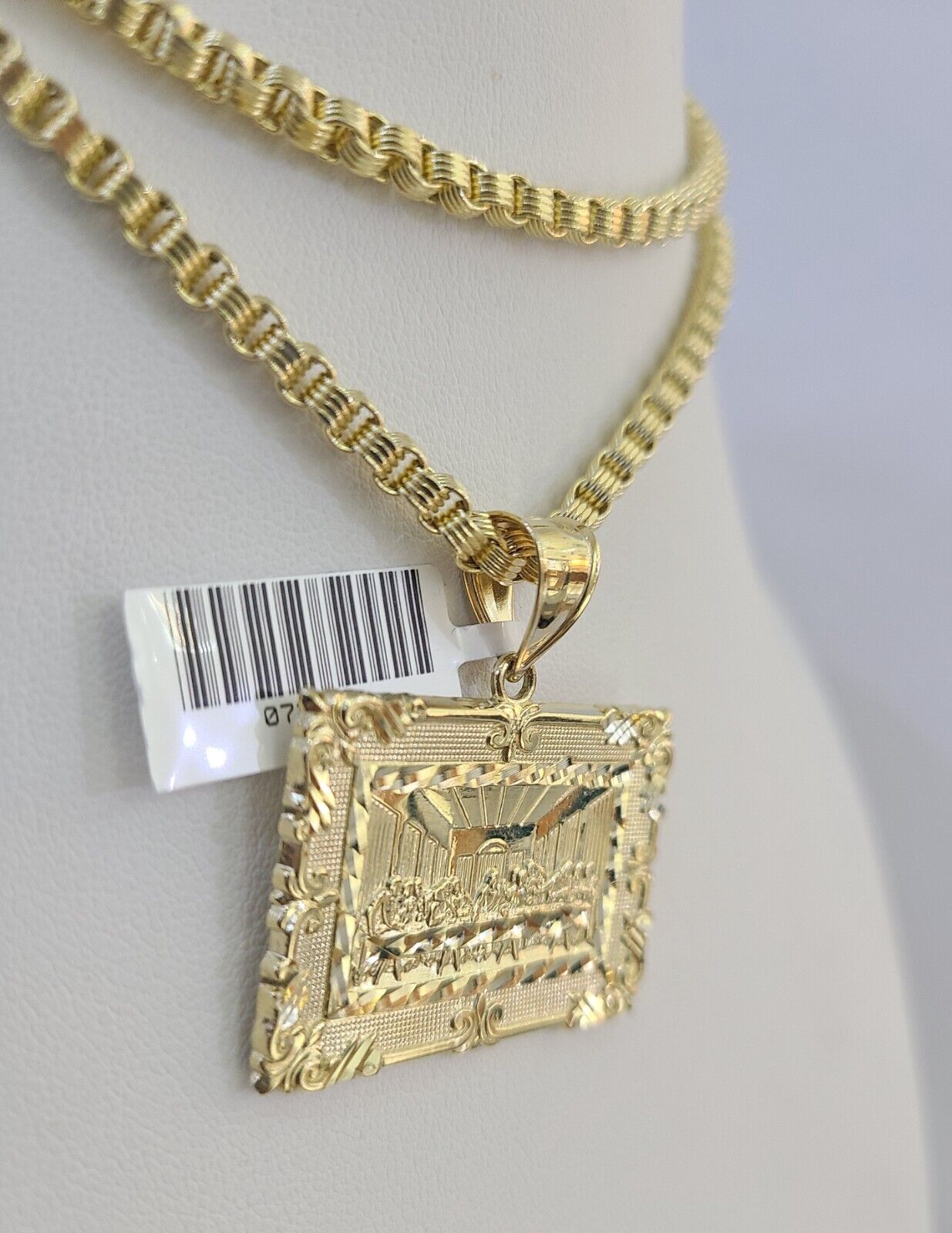 Real 10k Gold Box Byzantine Necklace Last Supper Charm Pendant SET Chain 18-30 Inch 3mm