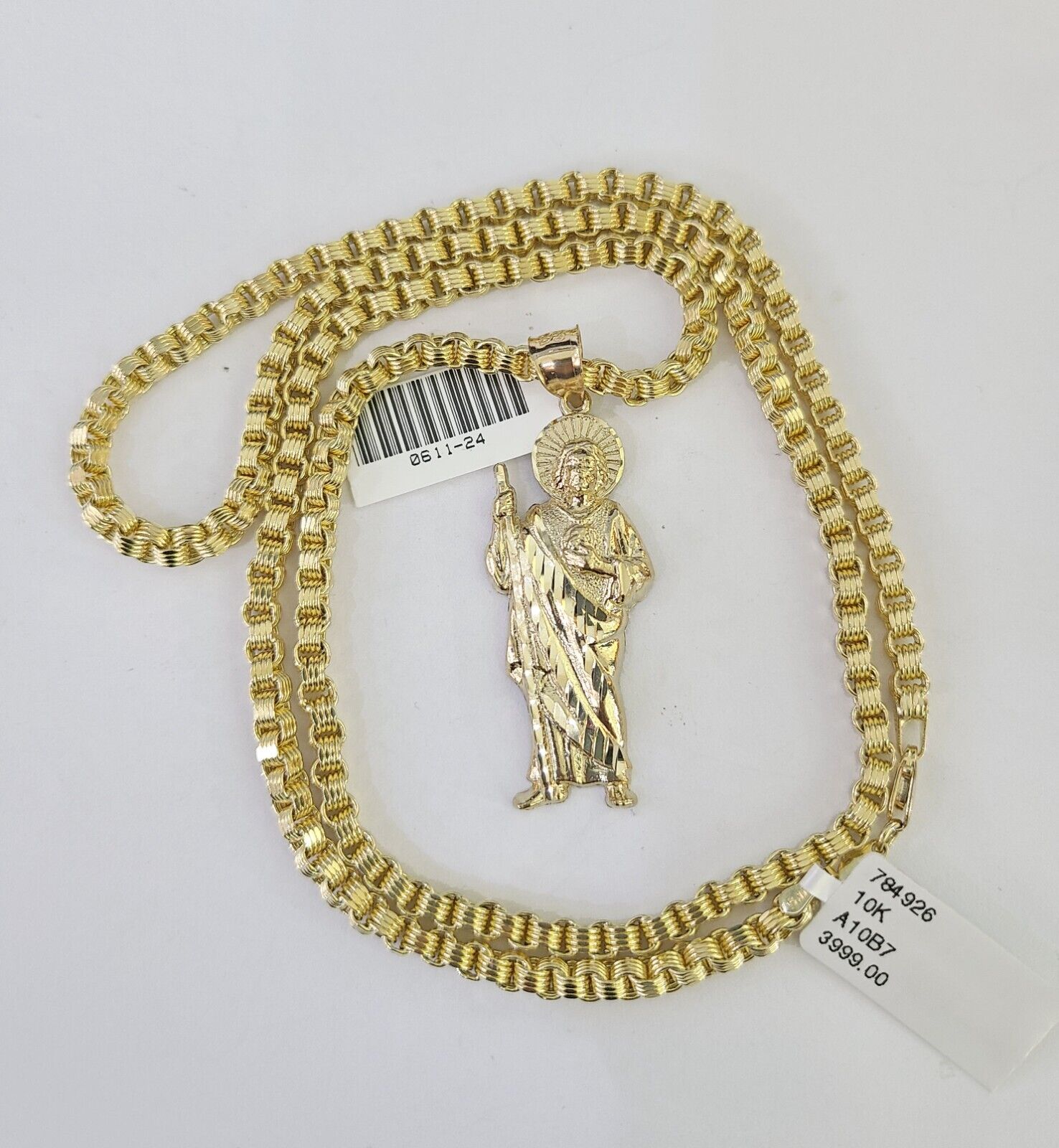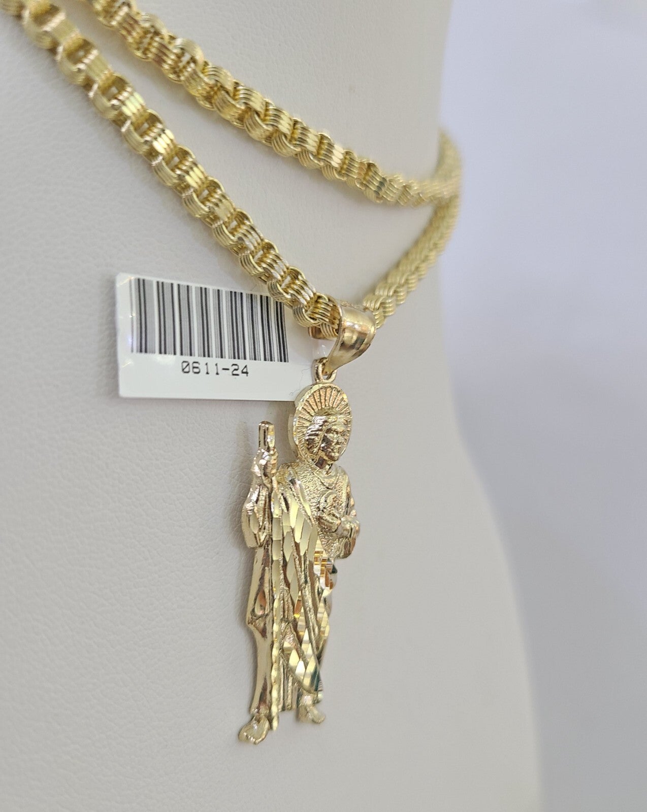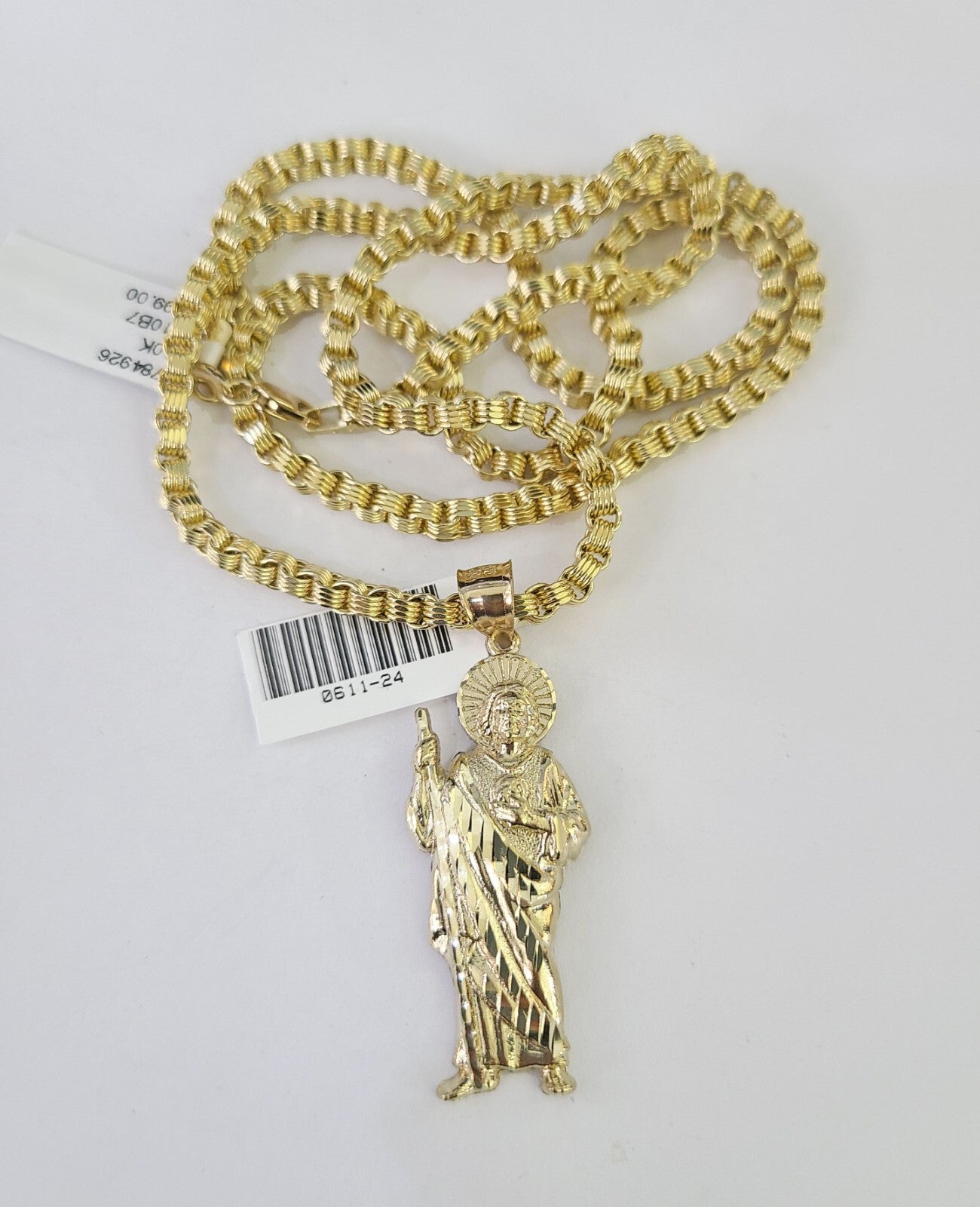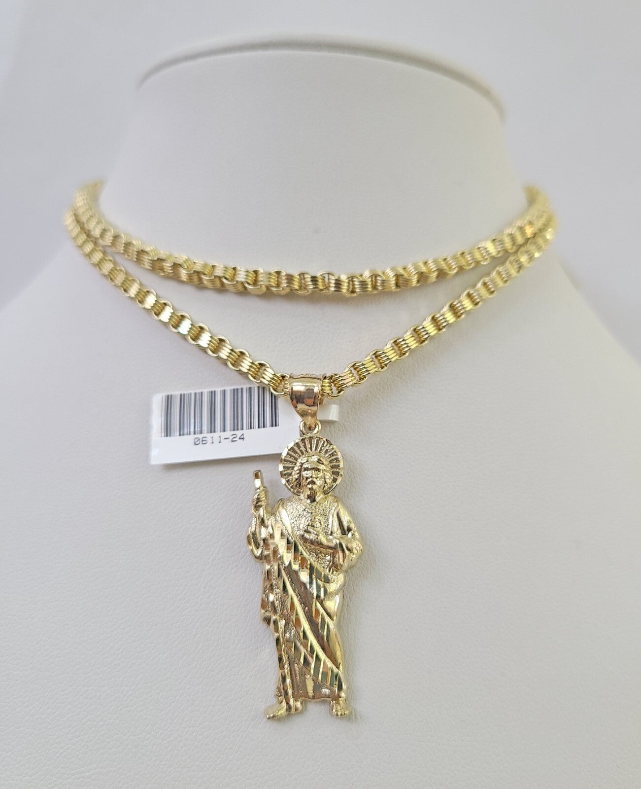 Real 10k Gold Byzantine Necklace Saint Jude Charm SET Chain 18"-30" 3mm Pendant