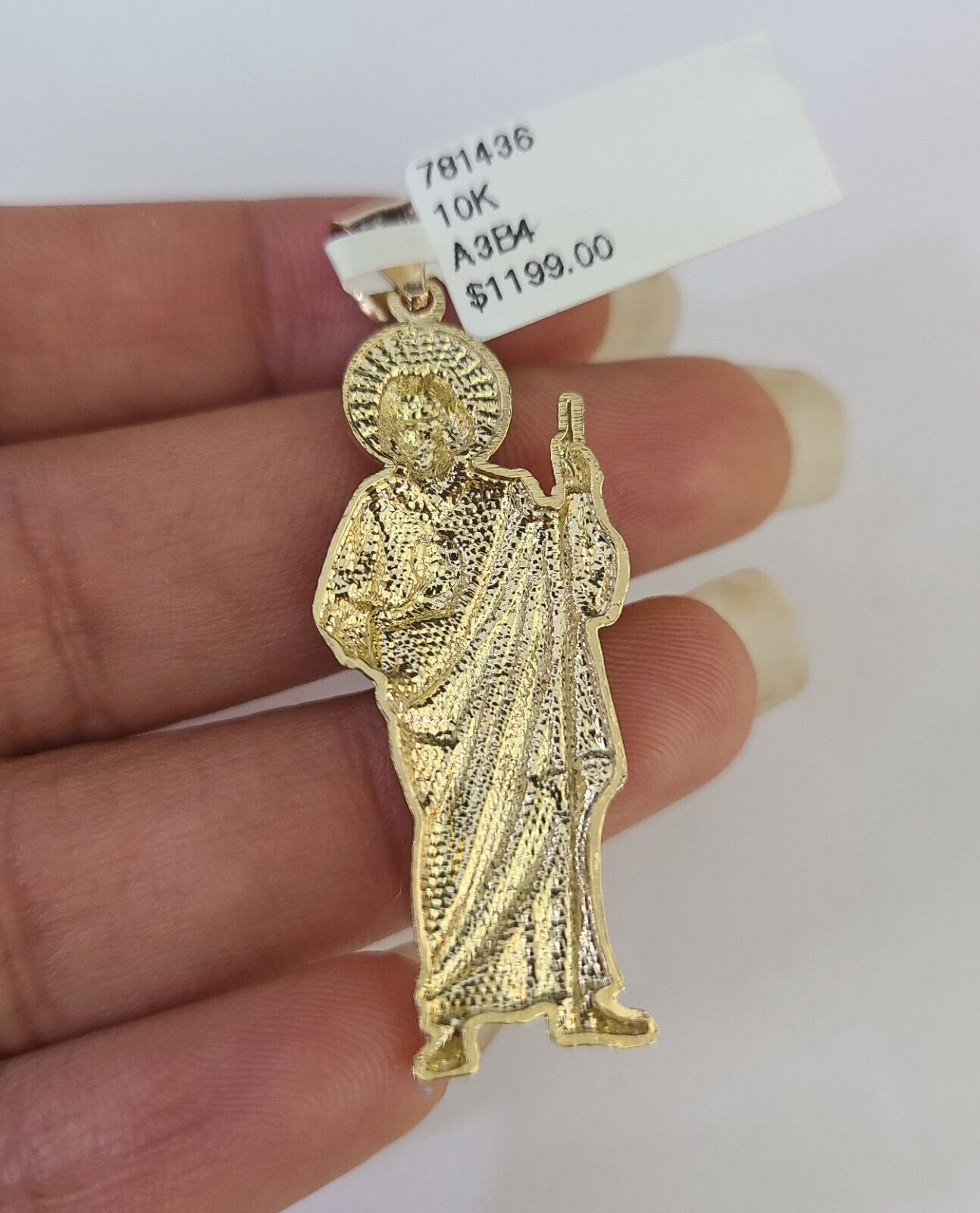 Real 10k Gold Box Byzantine Necklace Saint Jude Charm Pendant SET Chain 18-30 Inch 3mm