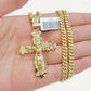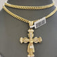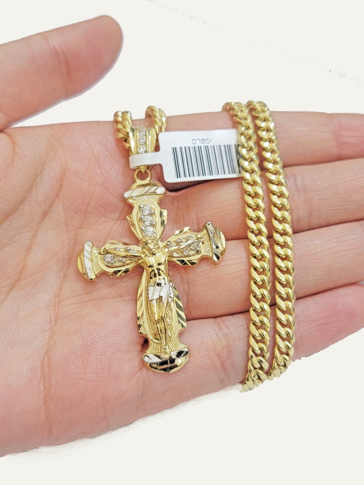 Real 10k Gold Chain Charm Set Cross Pendant Miami Cuban link Necklace 5mm 18-28"