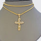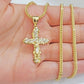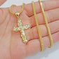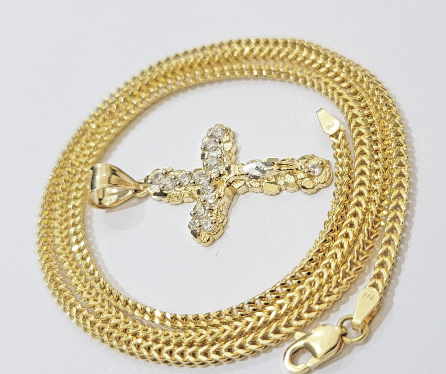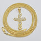 Real 10k Gold Jesus Cross Charm Chain Set Franco Necklace 2.5mm 18-24" Men Women