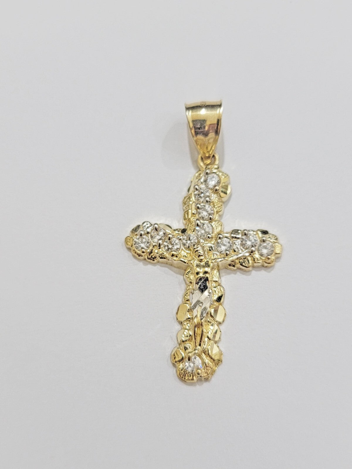 Genuine 10 k Yellow Gold Franco Chain 2.5mm With Jesus Crucifix Cross diamond cuts design. The Various length of the Chain are 18"-24" with Jesus Crucifix Cross 1.5 inches. The pendants are unique in design and considered durable too. The stones are cubic zirconia If you are not happy with the way it looks or feels, we do offer 30 - Days FREE Return shipping. Contact us for more information.