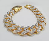 Real 10k Gold Monaco Bracelet 17mm 9" Two-tone Diamond Cut 10kt Royal Cuban link