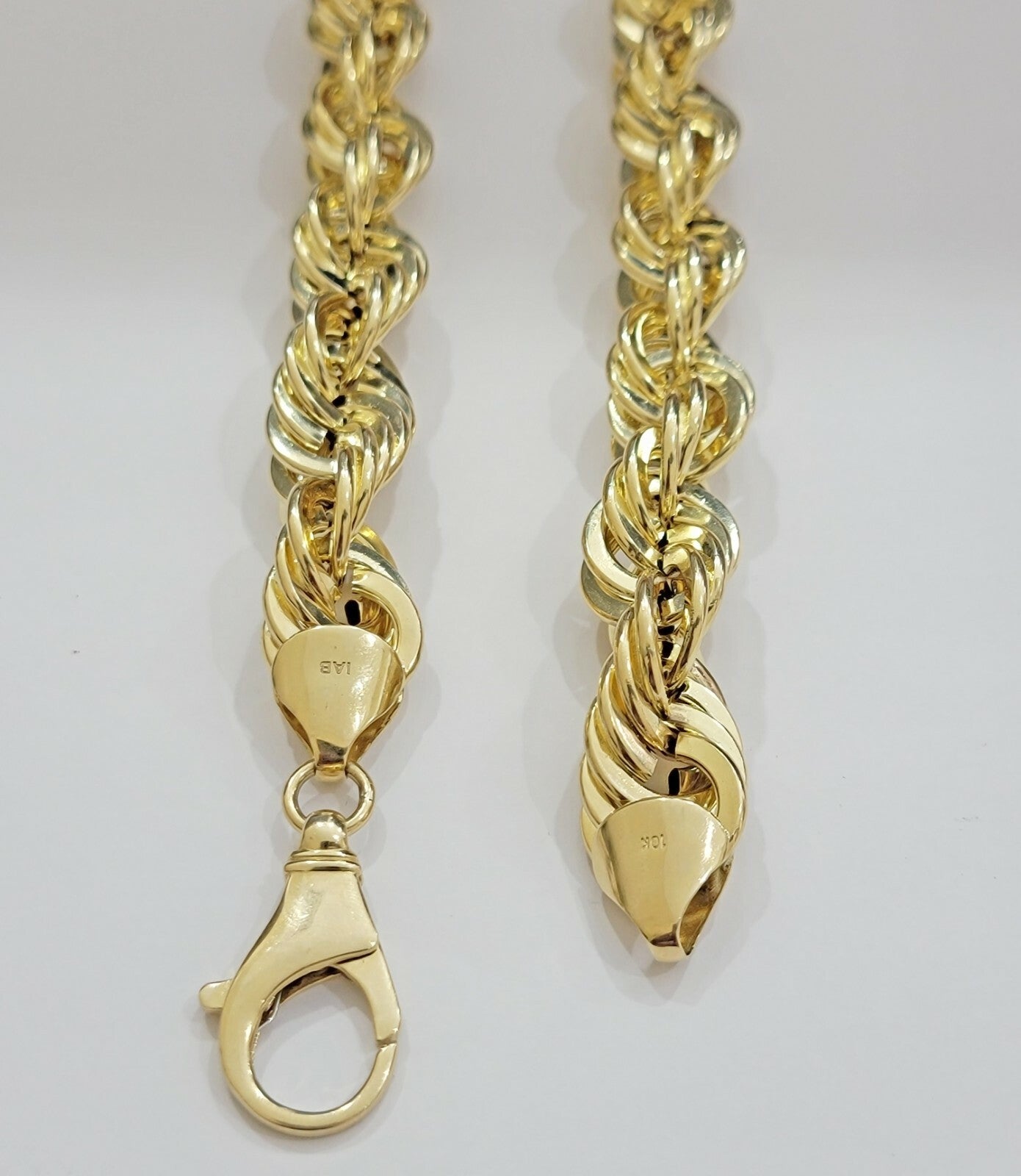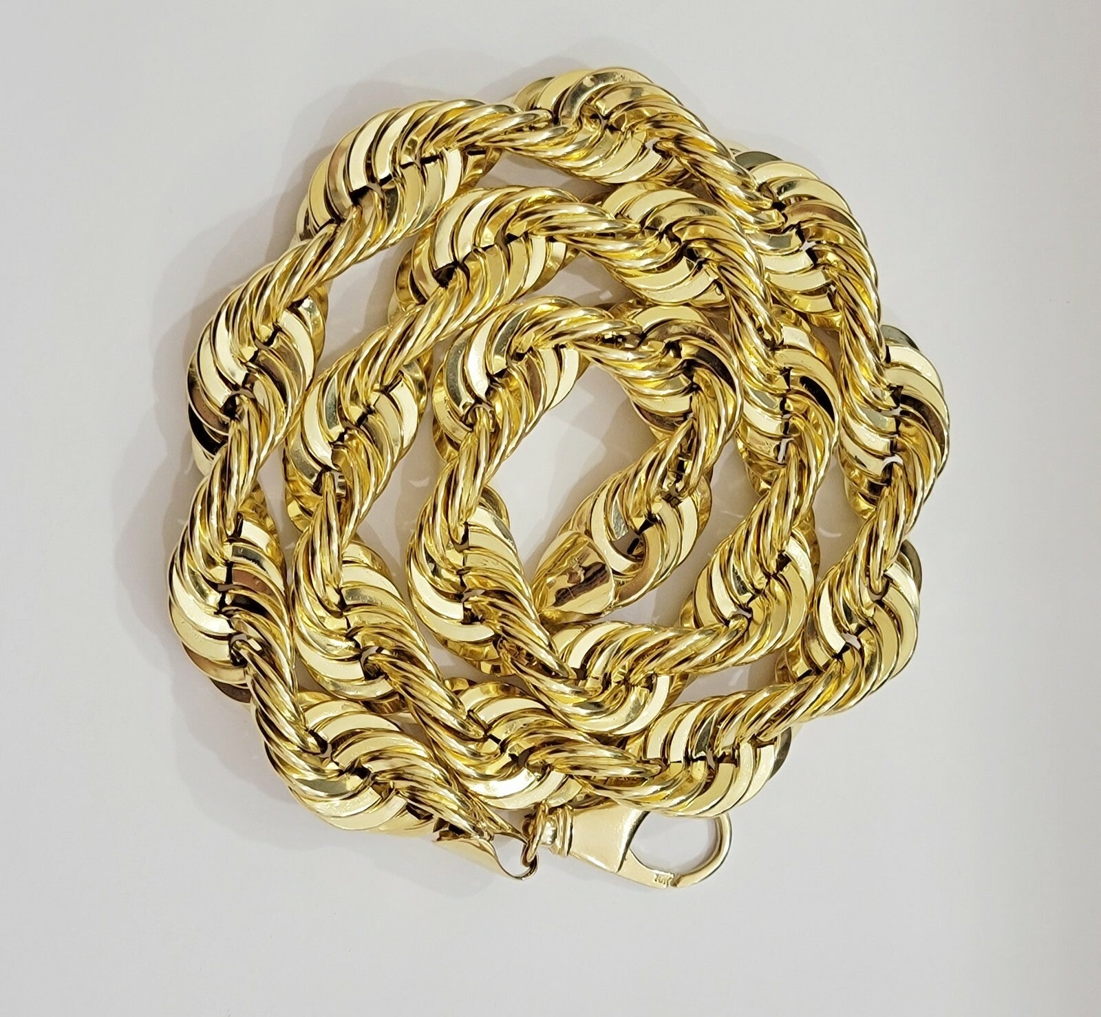 10 k Yellow Gold ( Real , Not plated , Not filled ) Hollow Rope chain For Men's . The Width of the necklace is 17 mm and 30 Inch Long . The Clasp is Lobster Lock. The chain is Beautiful and can be worn with the pendant. The necklace is 100% guaranteed 10k yellow gold and have been professionally tested and stamped 10k for purity authenticity. The chain is Strong and steady because of its thickness and weight. We guarantee the purity of the gold to be 10k, and the chains are NOT GOLD PLATED, NOT FILLED. If you are not happy with the way it looks or feels, we do FREE Return shipping.