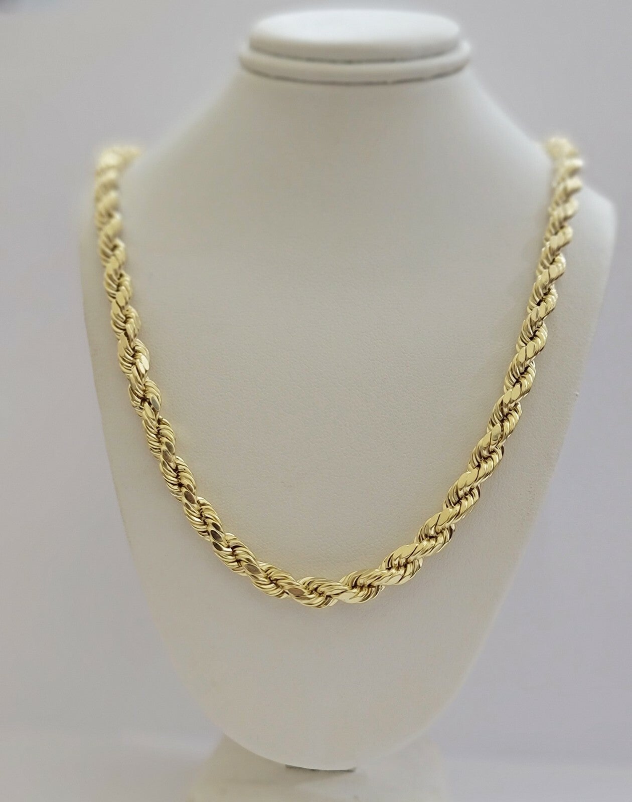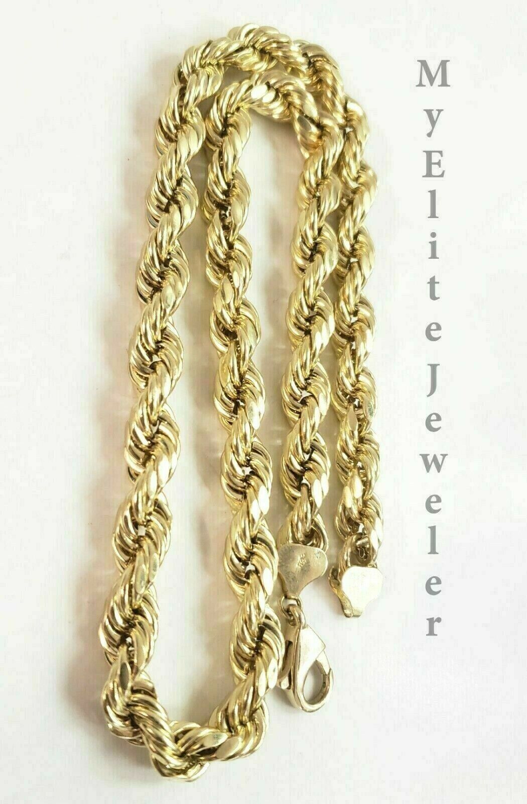 Real 10k Gold Rope Chain Necklace 7mm 26" Men's Diamond Cuts Lobster 10KT GOLD