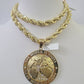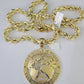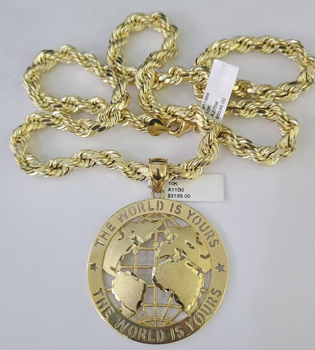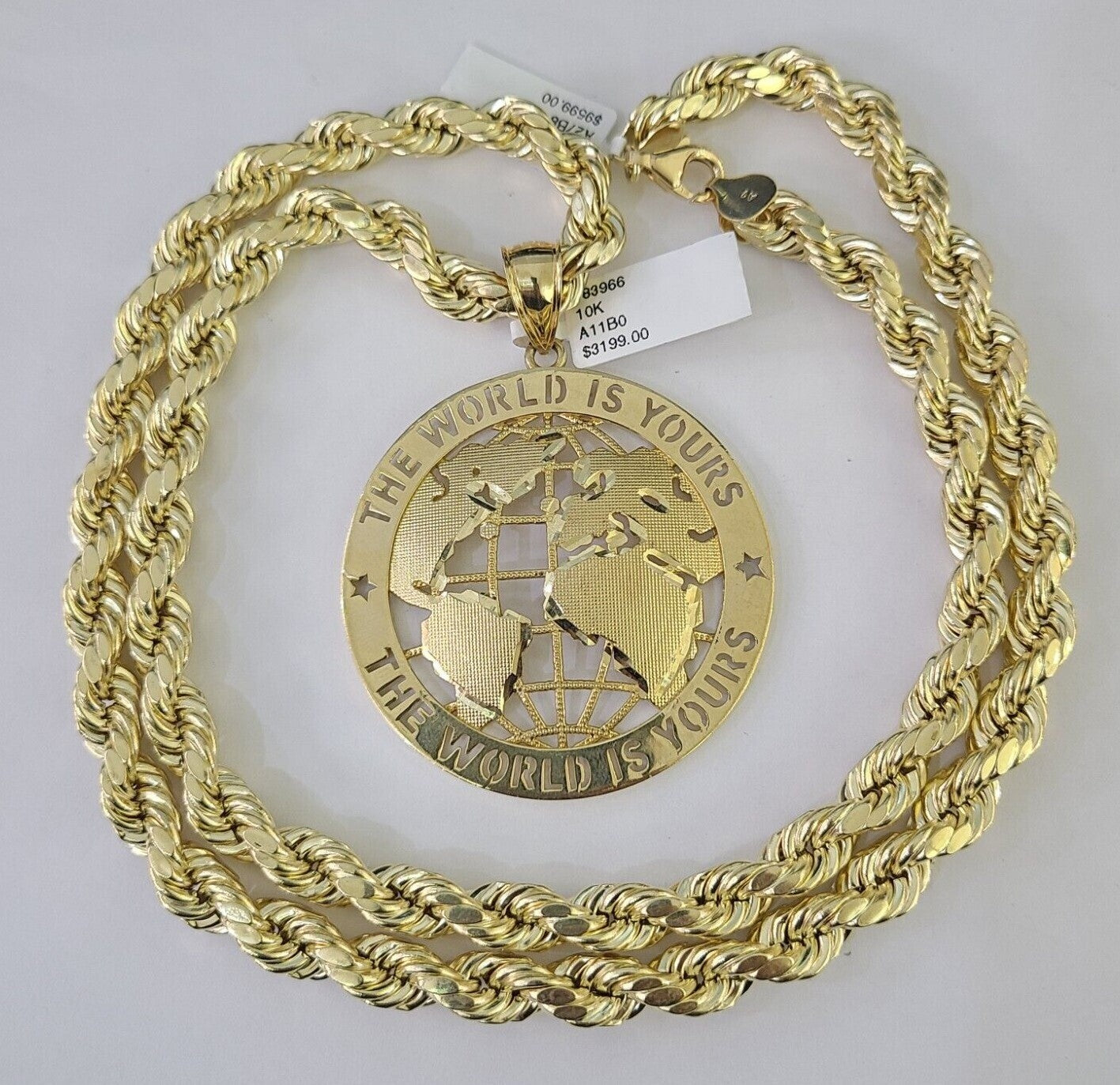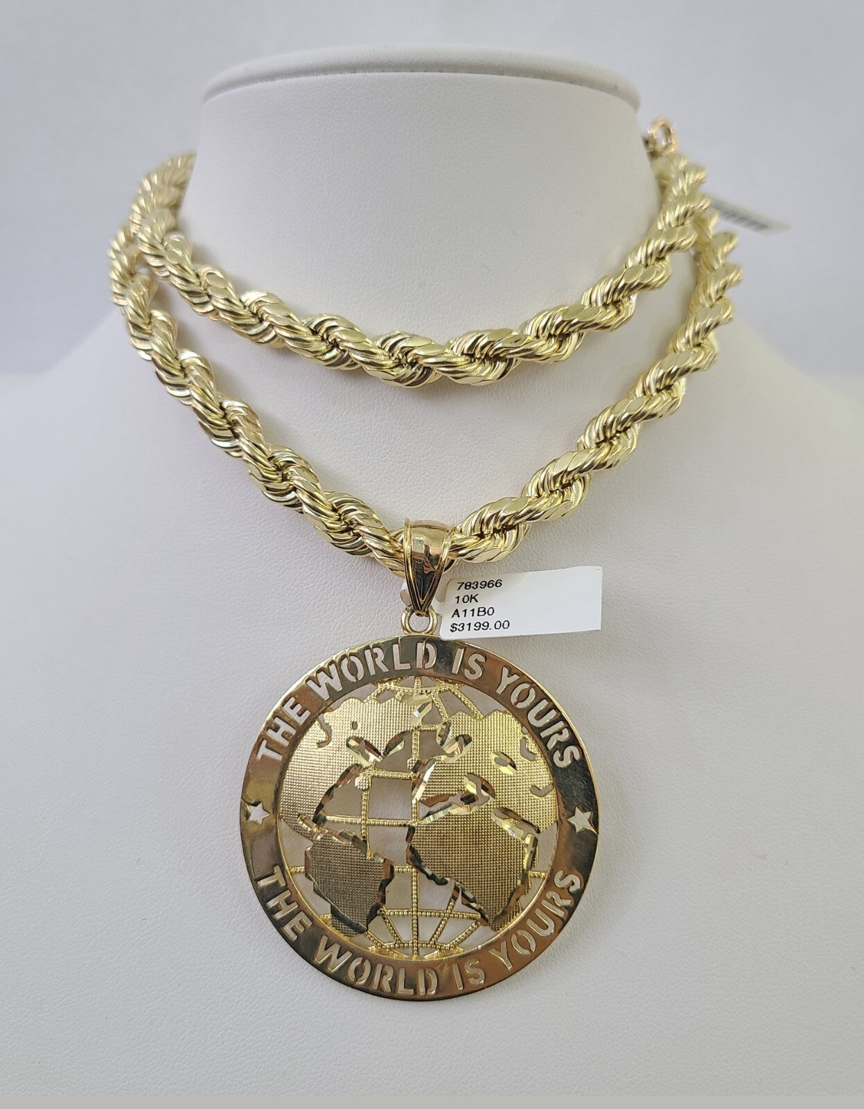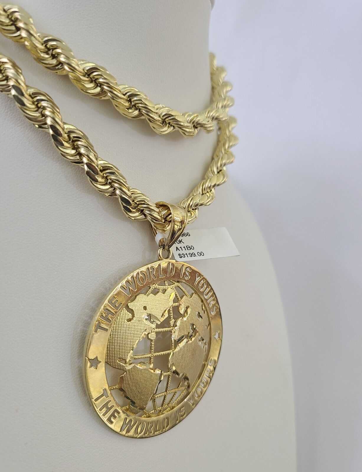 REAL 10k Gold Rope Chain World is Yours Charm Pendant SET Necklace 8mm 18-30''
