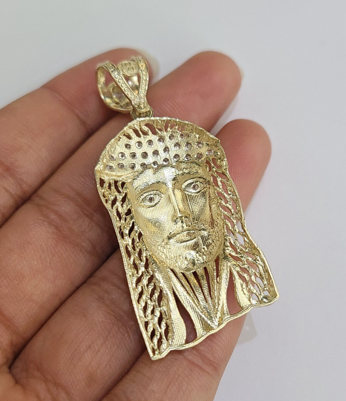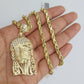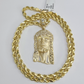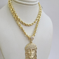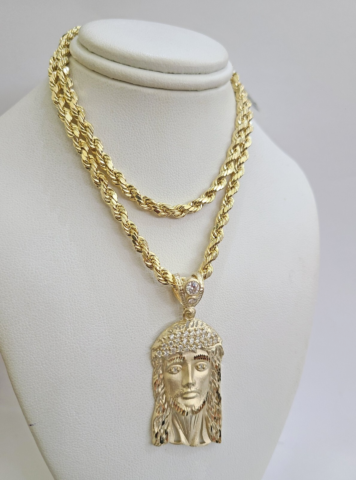 REAL 10k Rope Chain Jesus Head Charm Pendant 4mm Necklace Set 18"-28"