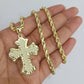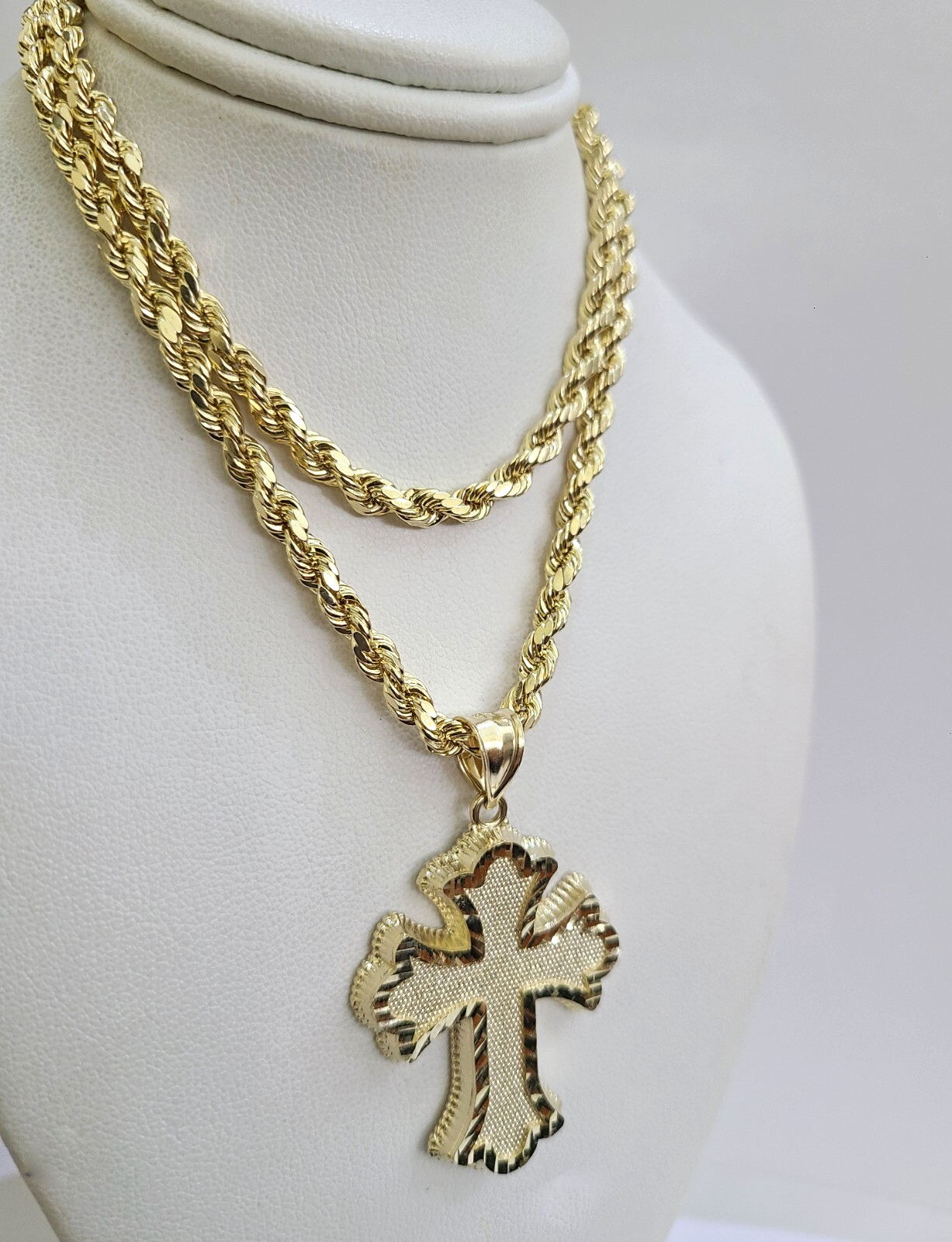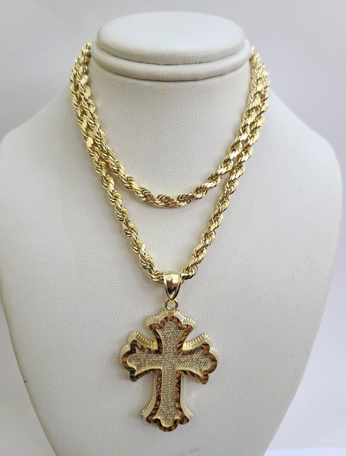 REAL 10k Rope Chain Jesus Cross Charm Pendant 4mm Necklace Set 18"-28"
