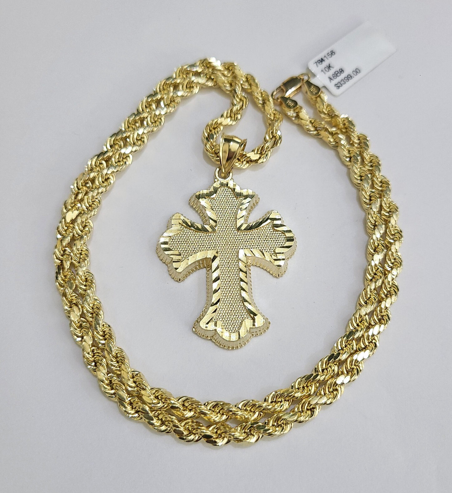 Genuine 10k Yellow Gold Rope Chain 4mm With Jesus Cross Diamond cuts design. The Various length of the Chain are 18"-28". The pendants are unique in design and considered durable too. If you are not happy with the way it looks or feels, we do offer 30 - Days FREE Return shipping. Contact us for more information.